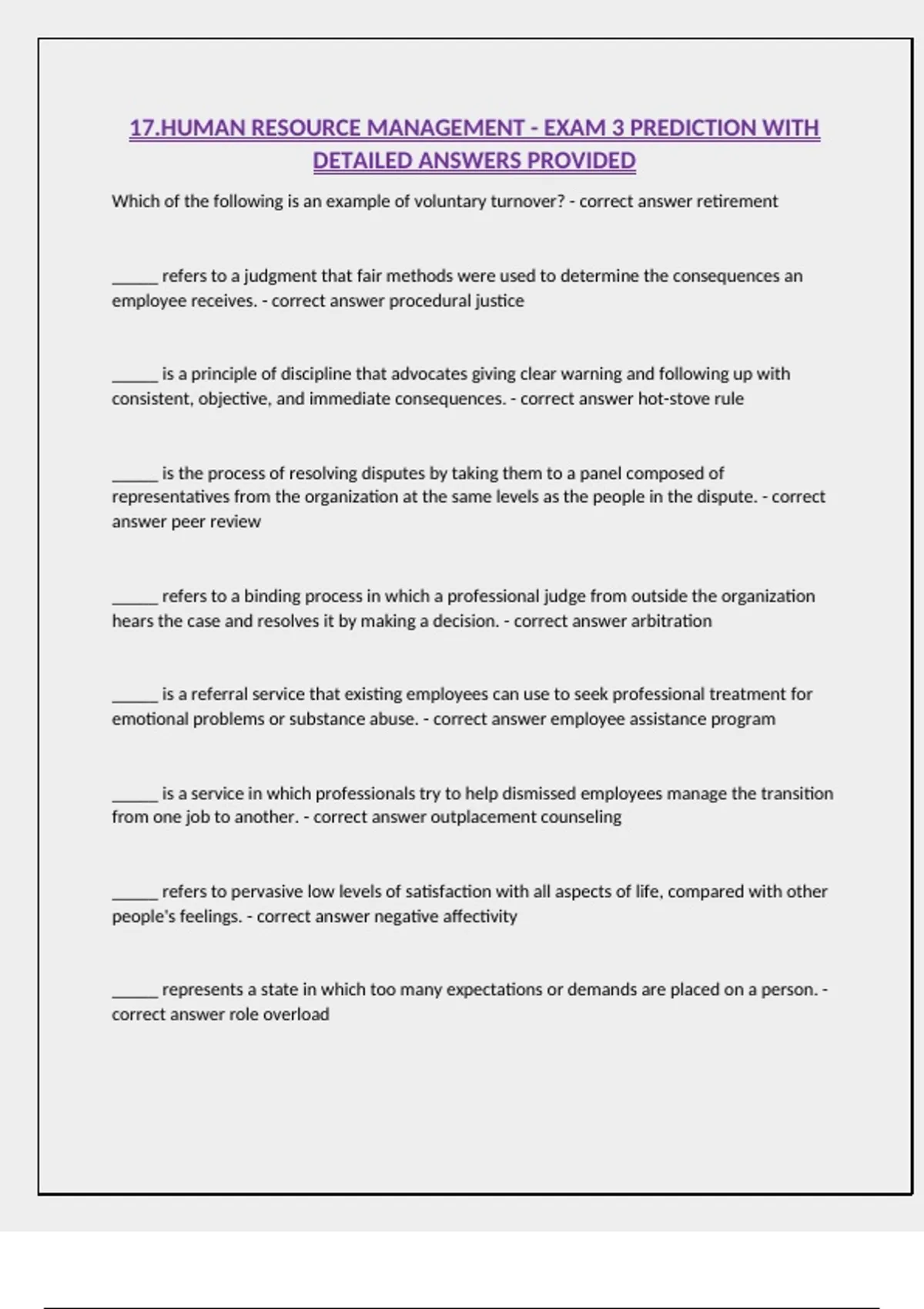 17.HUMAN RESOURCE MANAGEMENT - EXAM 3 PREDICTION WITH