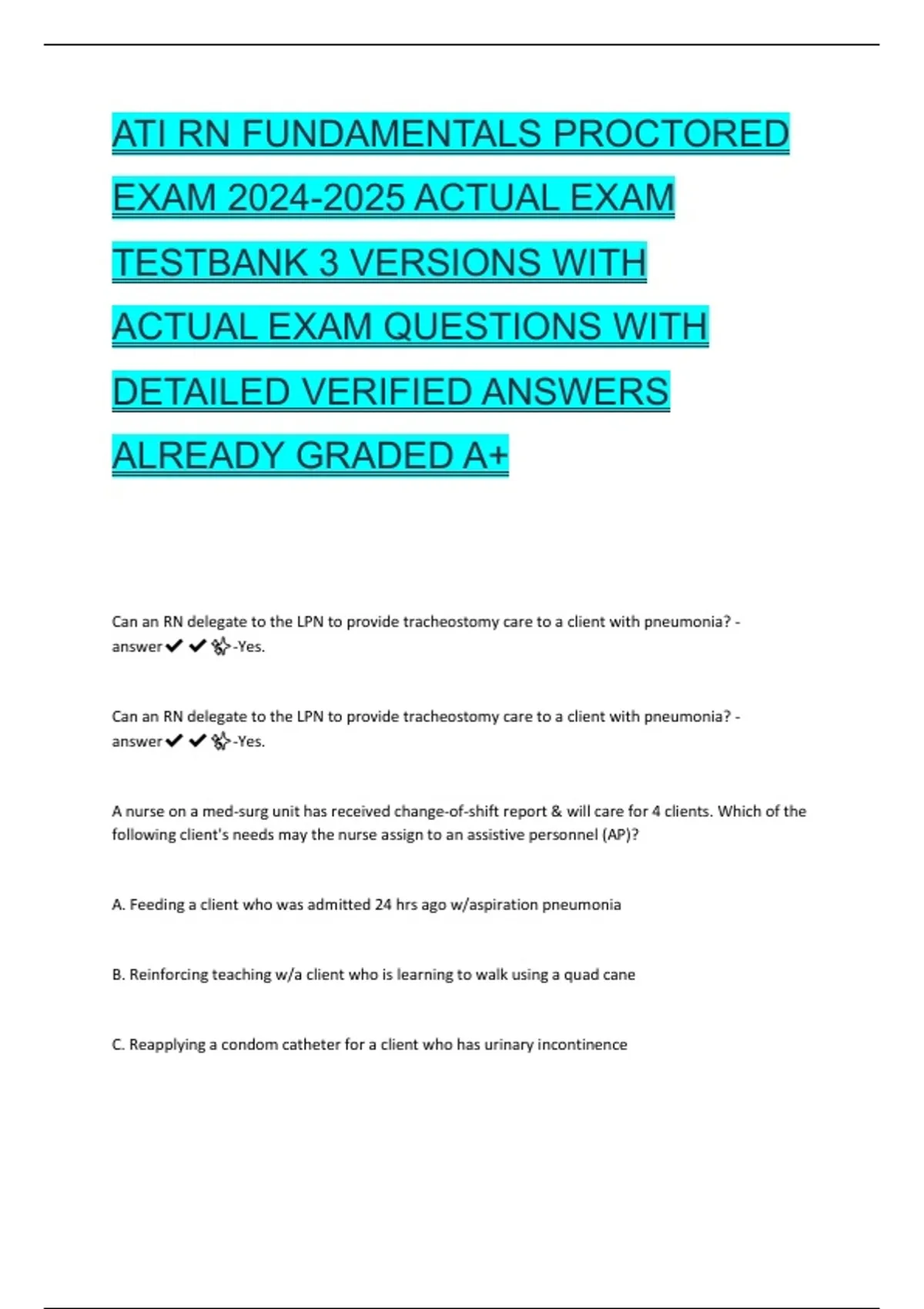 ACTUAL EXAM QUESTIONS WITH