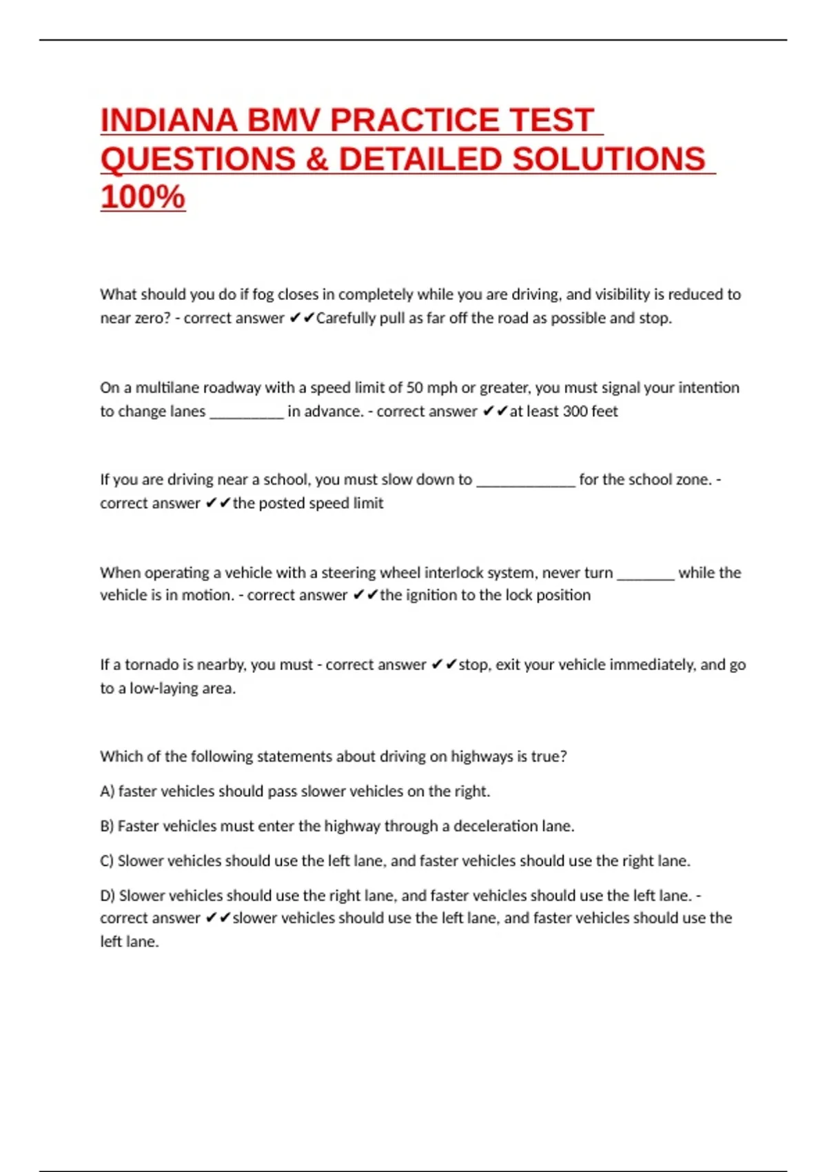 INDIANA BMV PRACTICE TEST QUESTIONS & DETAILED SOLUTIONS 100%