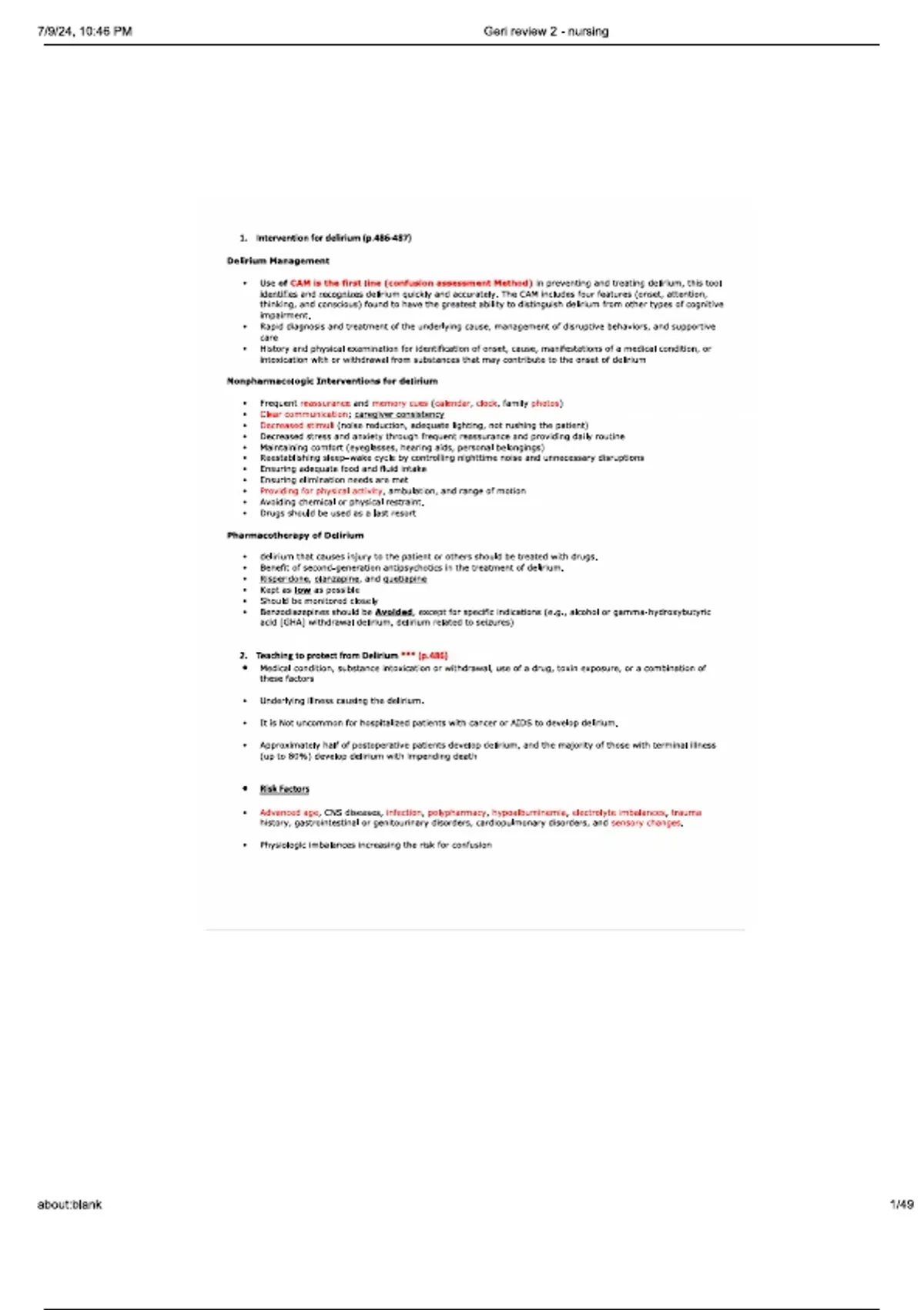 Geriatric Nursing Review 2: Delirium, Dementia, Suicide Risk & Sensory Loss