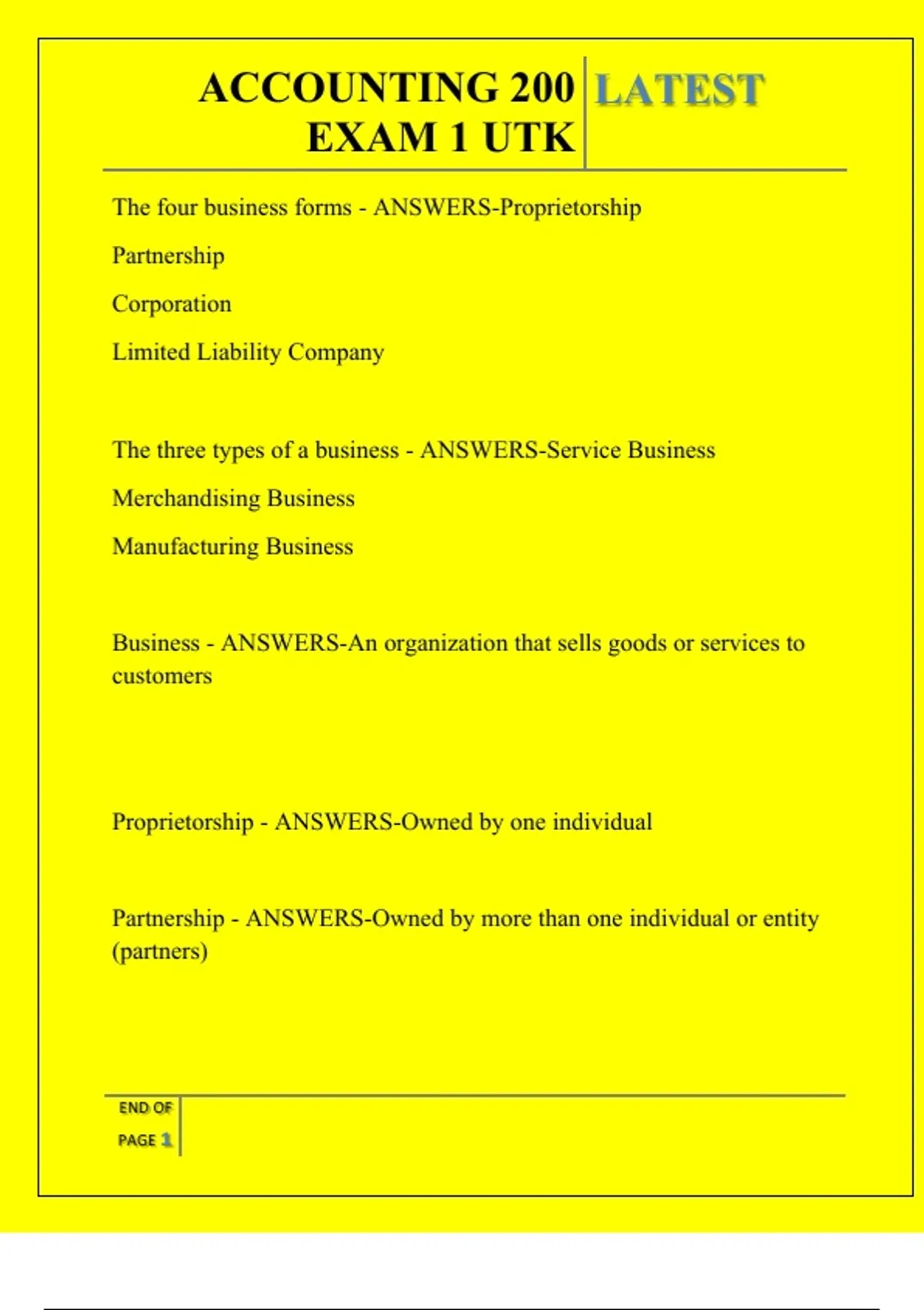 Equation for Net Income - ANSWERS-Revenues - Expenses