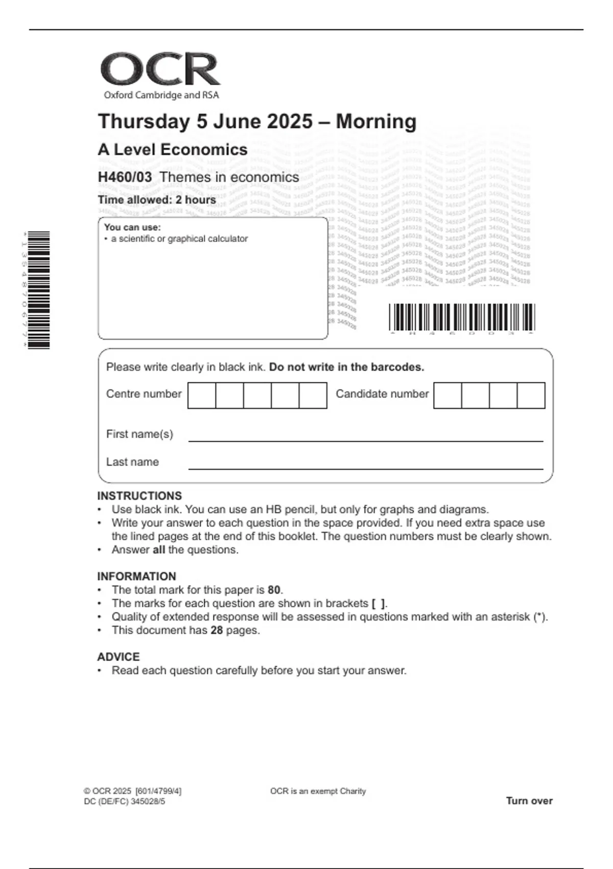 H460/03 Themes in economics
