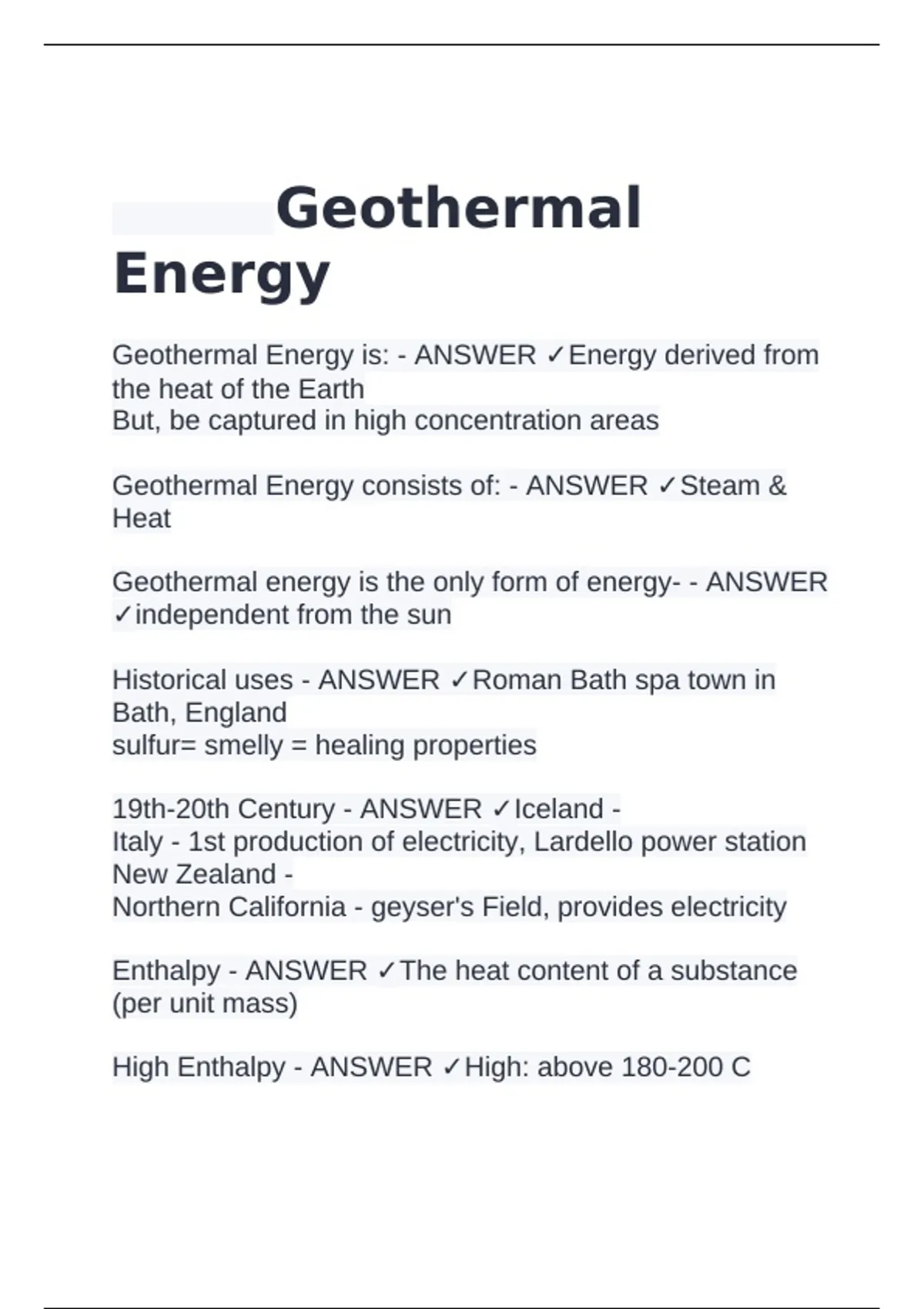 Geothermal Energy consists of: - ANSWER ✓Steam &