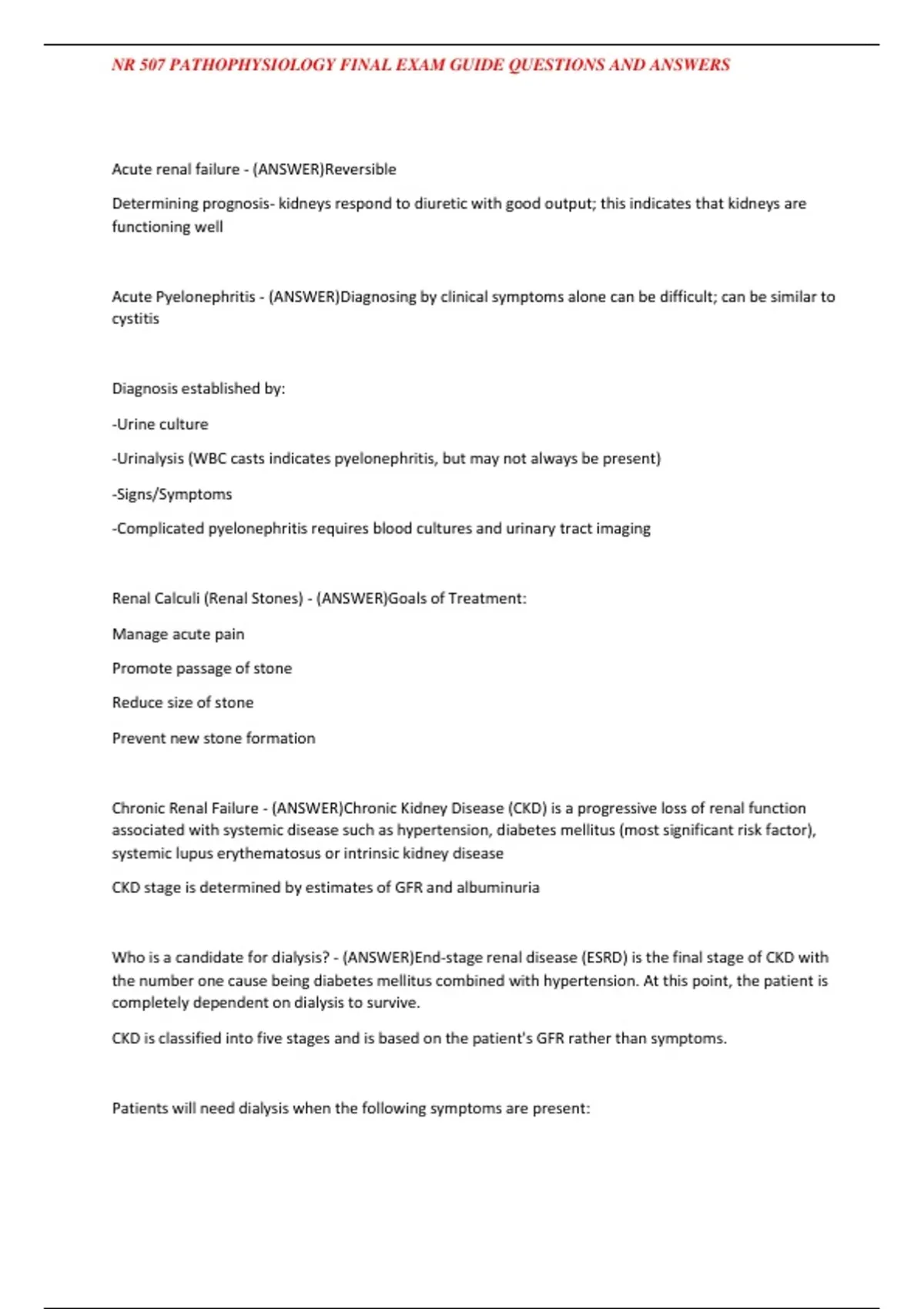 NR 507 PATHOPHYSIOLOGY FINAL EXAM GUIDE QUESTIONS AND ANSWERS