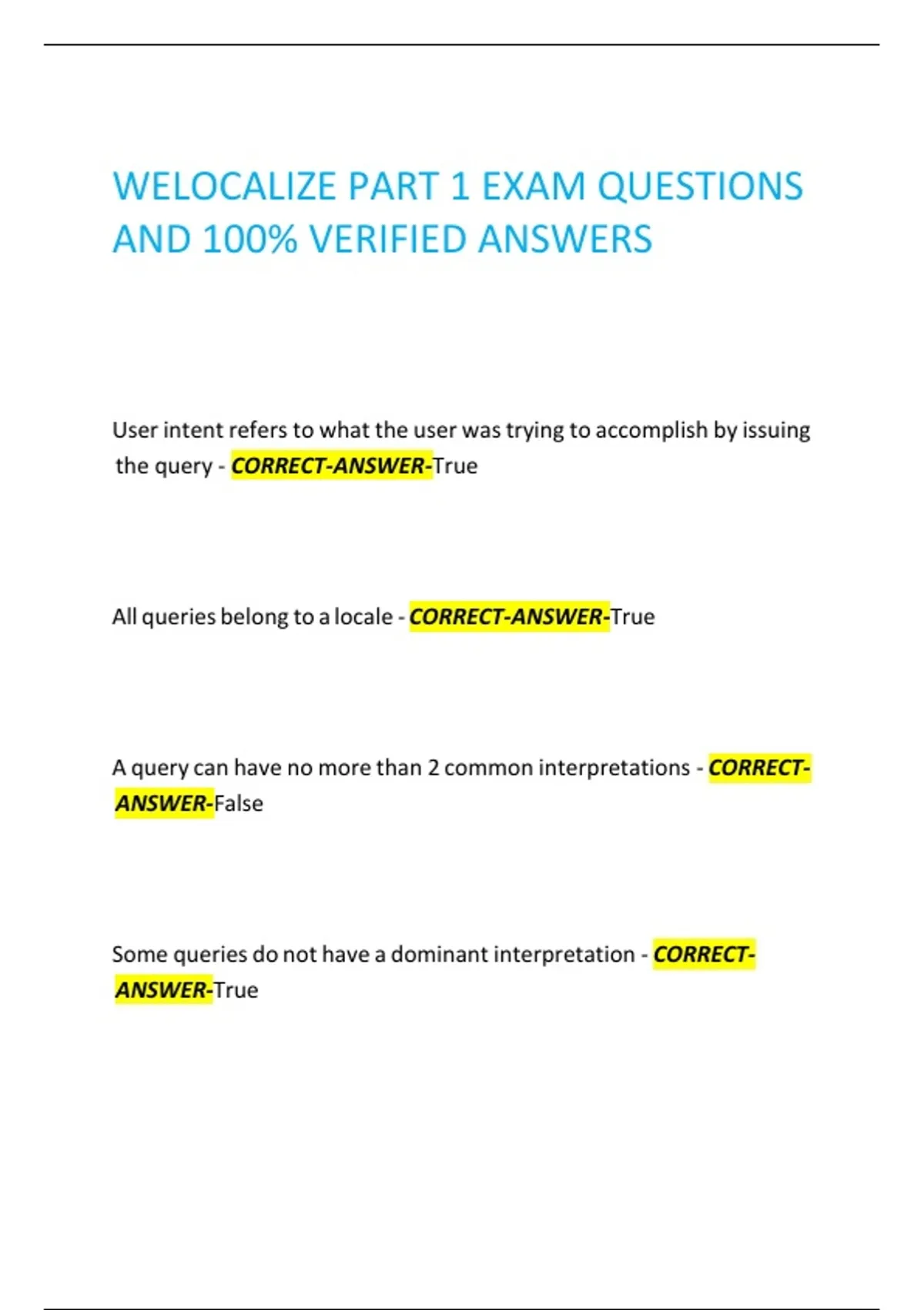 WELOCALIZE PART 1 EXAM QUESTIONS