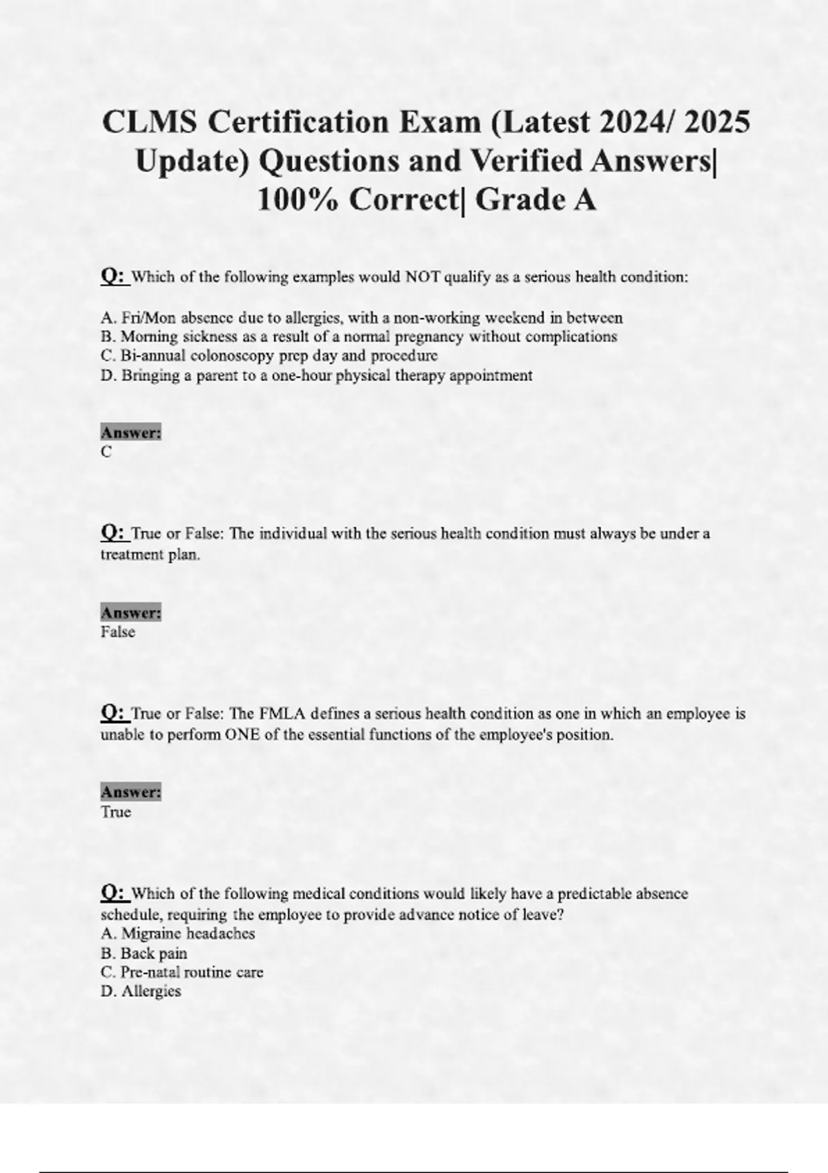 CLMS Certification Exam (Latest Update) Questions and Verified Answers, 100- Correct, Grade