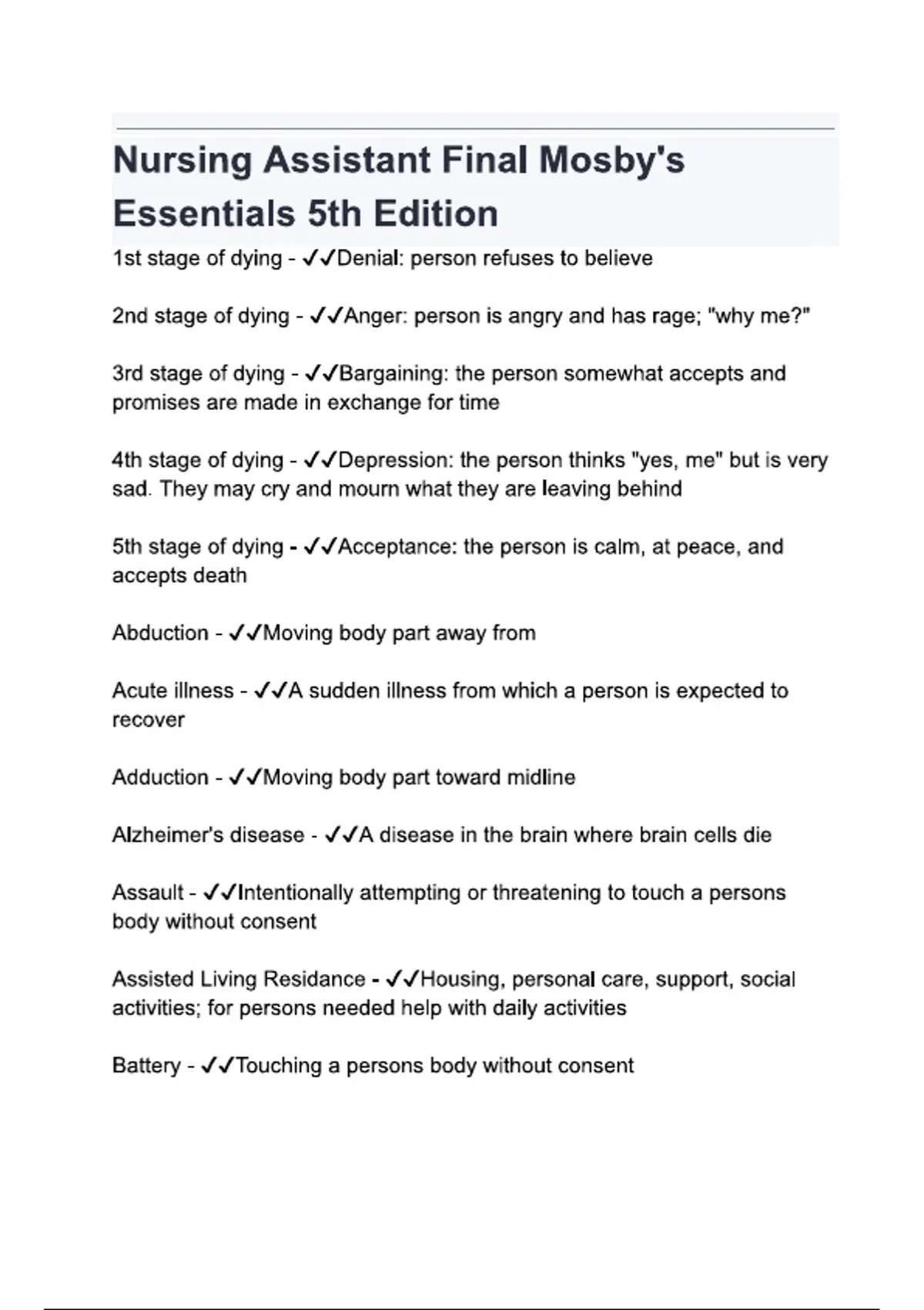 Nursing Assistant Final Mosby-s Essentials 5th Edition