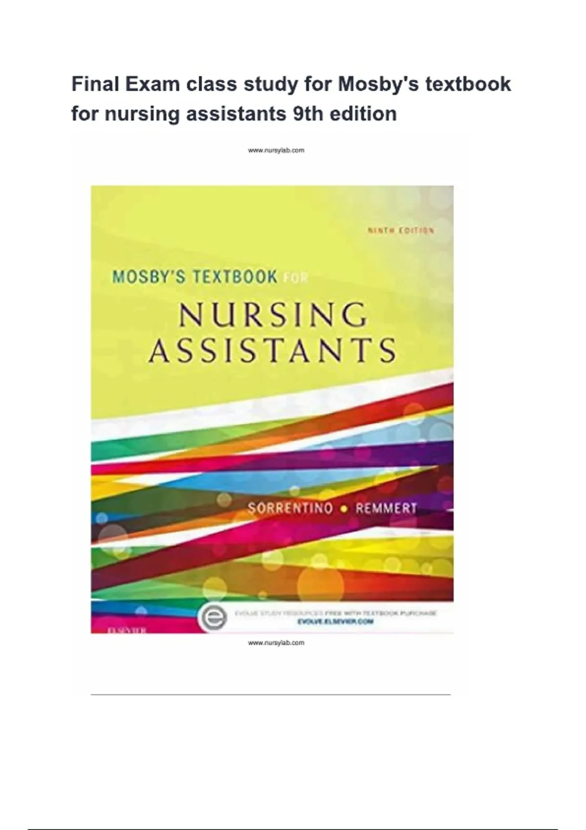 Final Exam class study for Mosby-s textbook for nursing assistants 9th edition