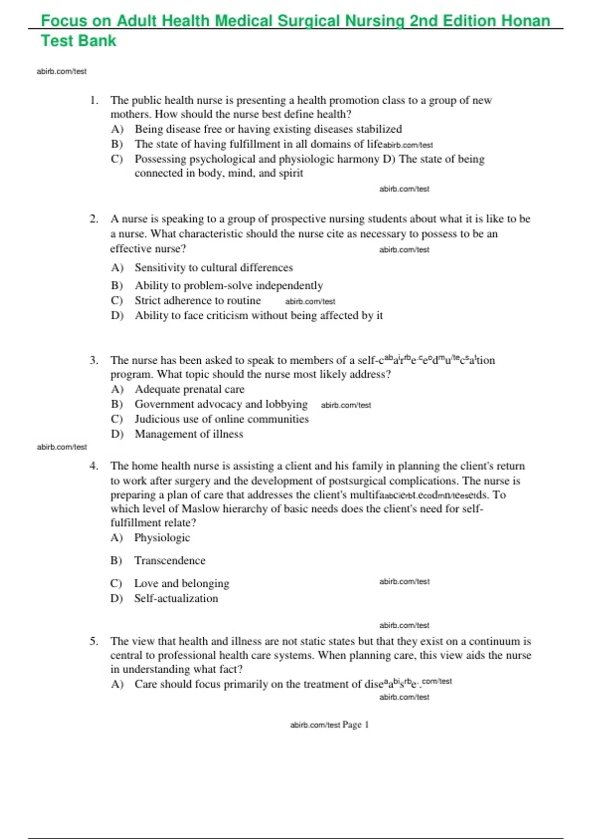Focus on Adult Health Medical Surgical Nursing 2nd Edition Honan Test Bank