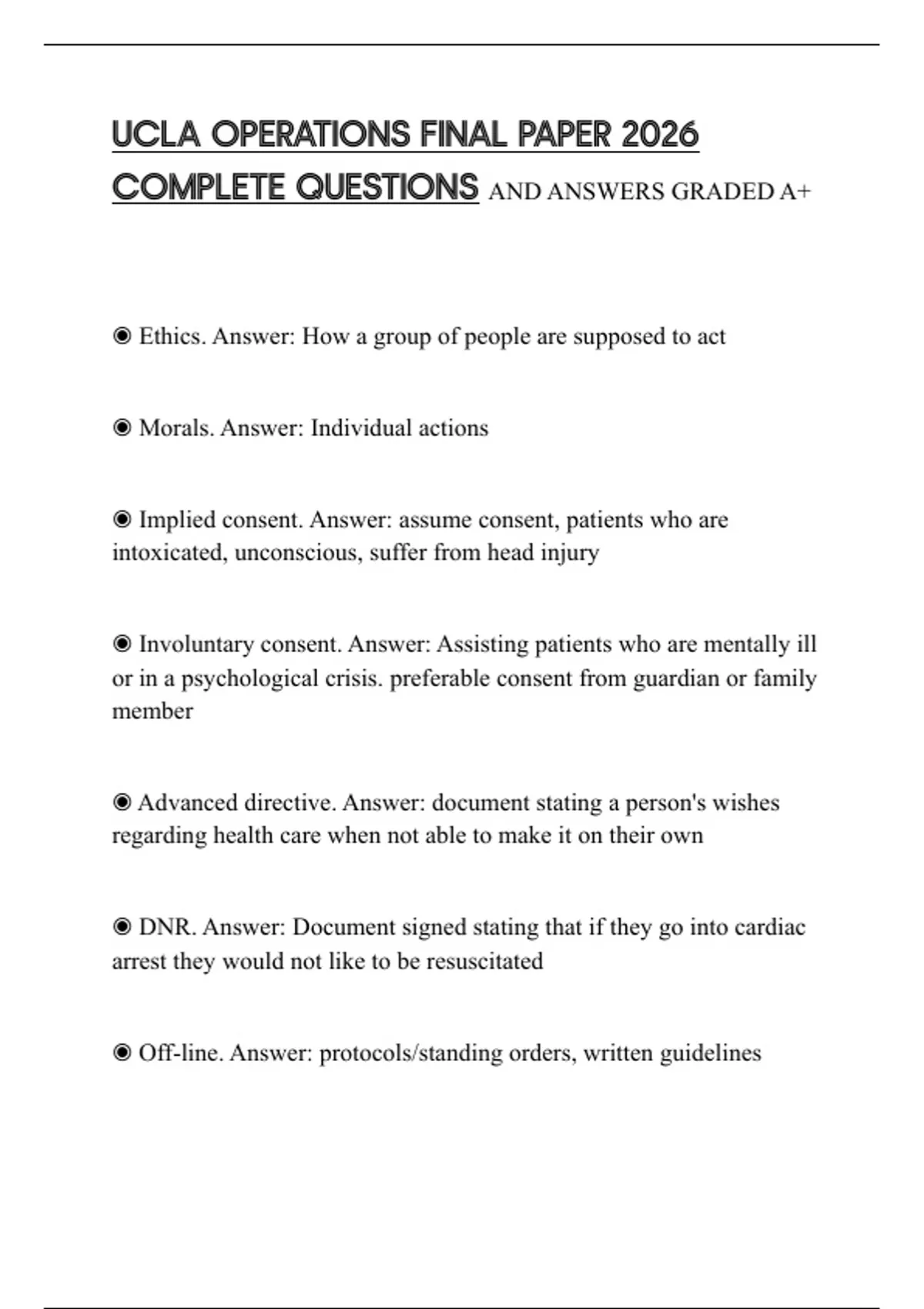 UCLA OPERATIONS FINAL PAPER 2026 COMPLETE QUESTIONS AND ANSWERS GRADED A+