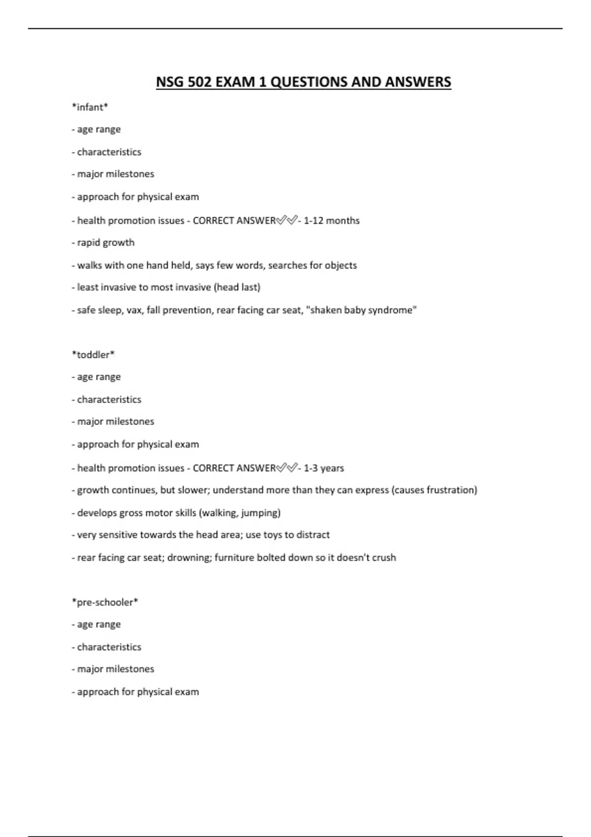 - health promotion issues - CORRECT ANSWER✅✅- 1-3 years