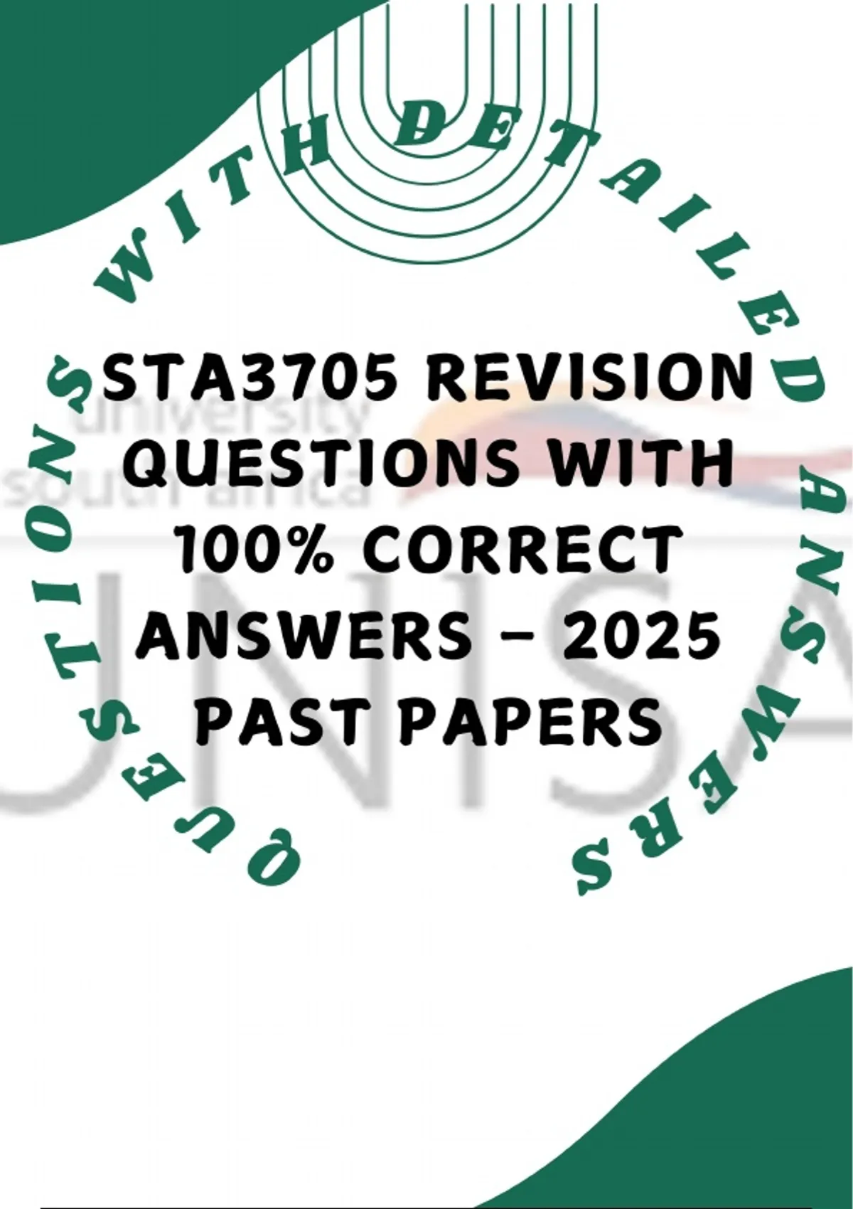 STA3705 REVISION QUESTIONS WITH 100% CORRECT ANSWERS – 2025 PAST PAPERS QUESTIONS WITH RESPECTIVE ANSWERS