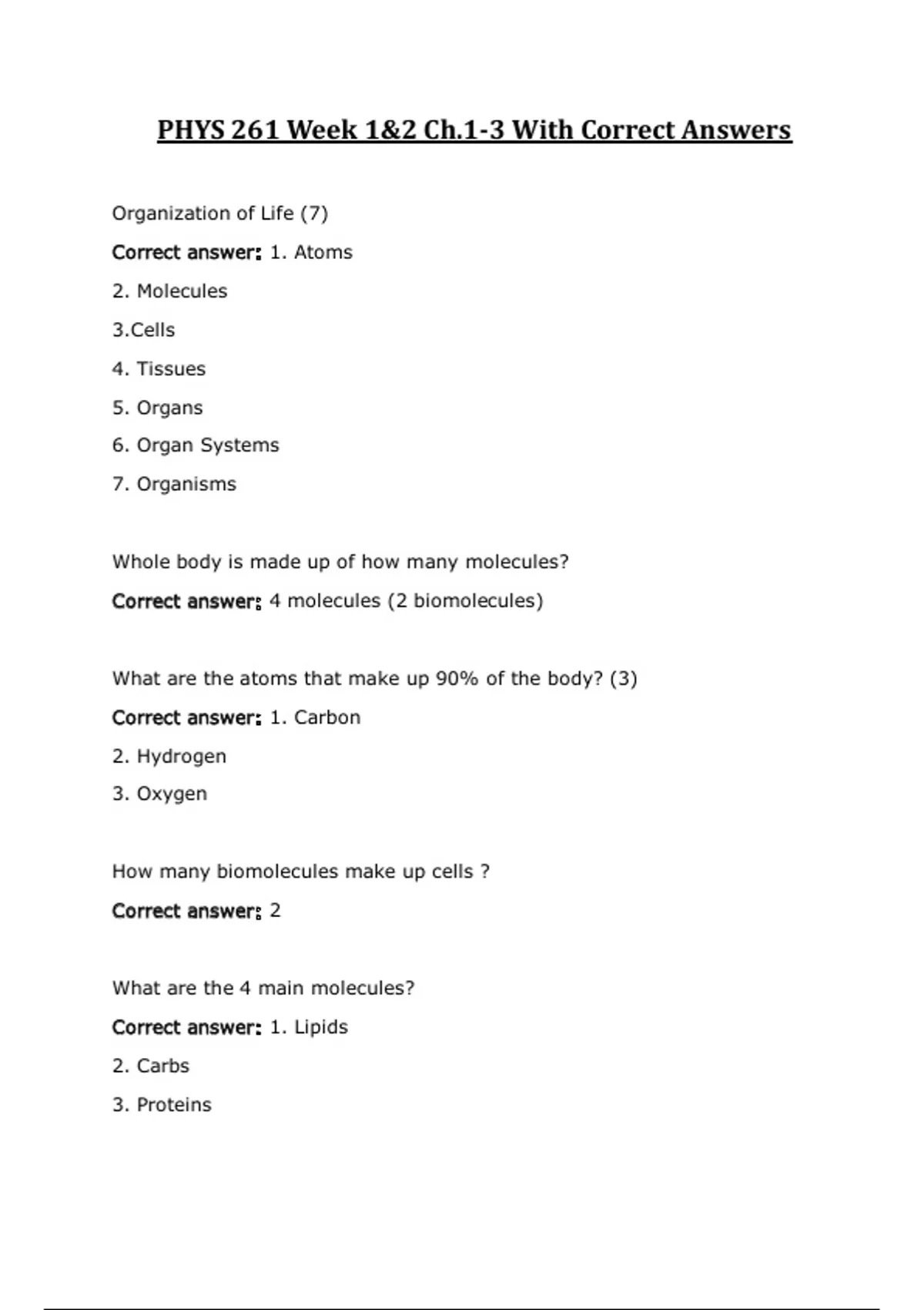 PHYS 261 Week 1&2 Ch.1-3 With Correct Answers