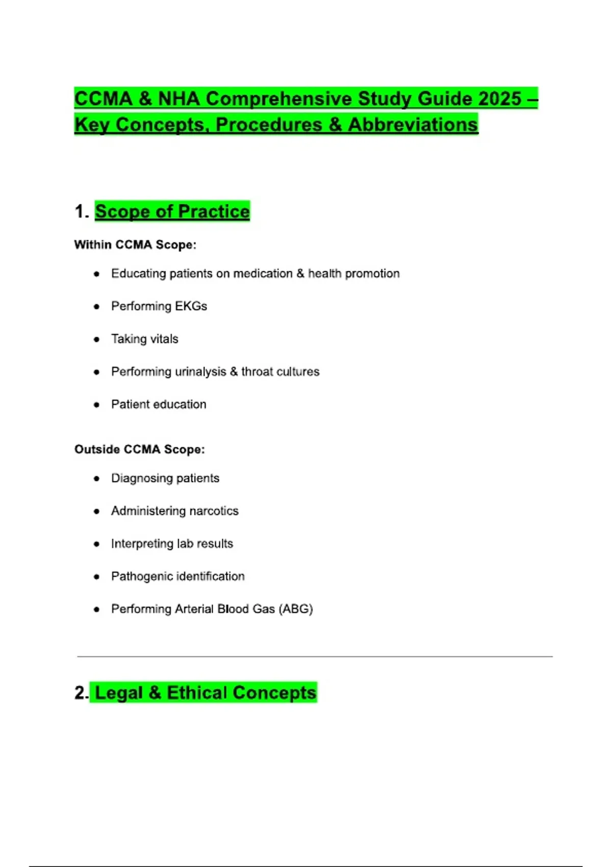 CCMA & NHA Comprehensive Study Guide 2025 – Key Concepts, Procedures & Abbreviations