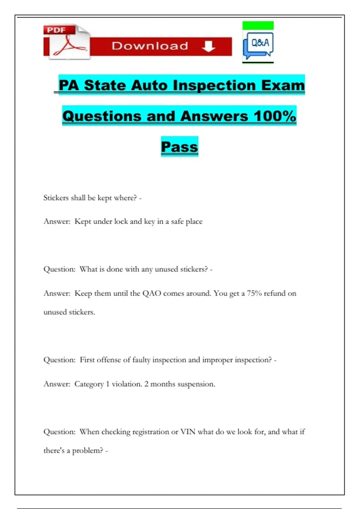 PA State Auto Inspection Exam