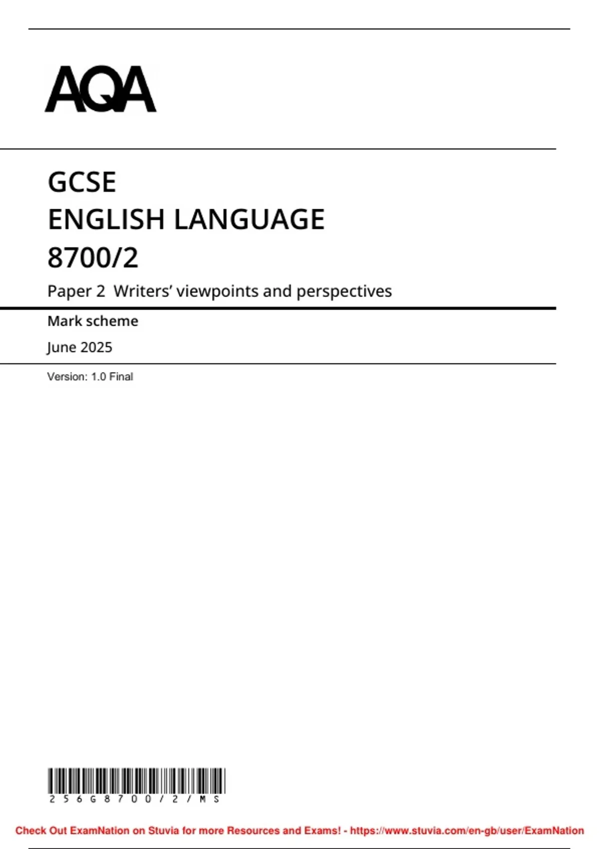 , MARK SCHEME – GCSE ENGLISH LANGUAGE – 8700/2 – JUNE 2025