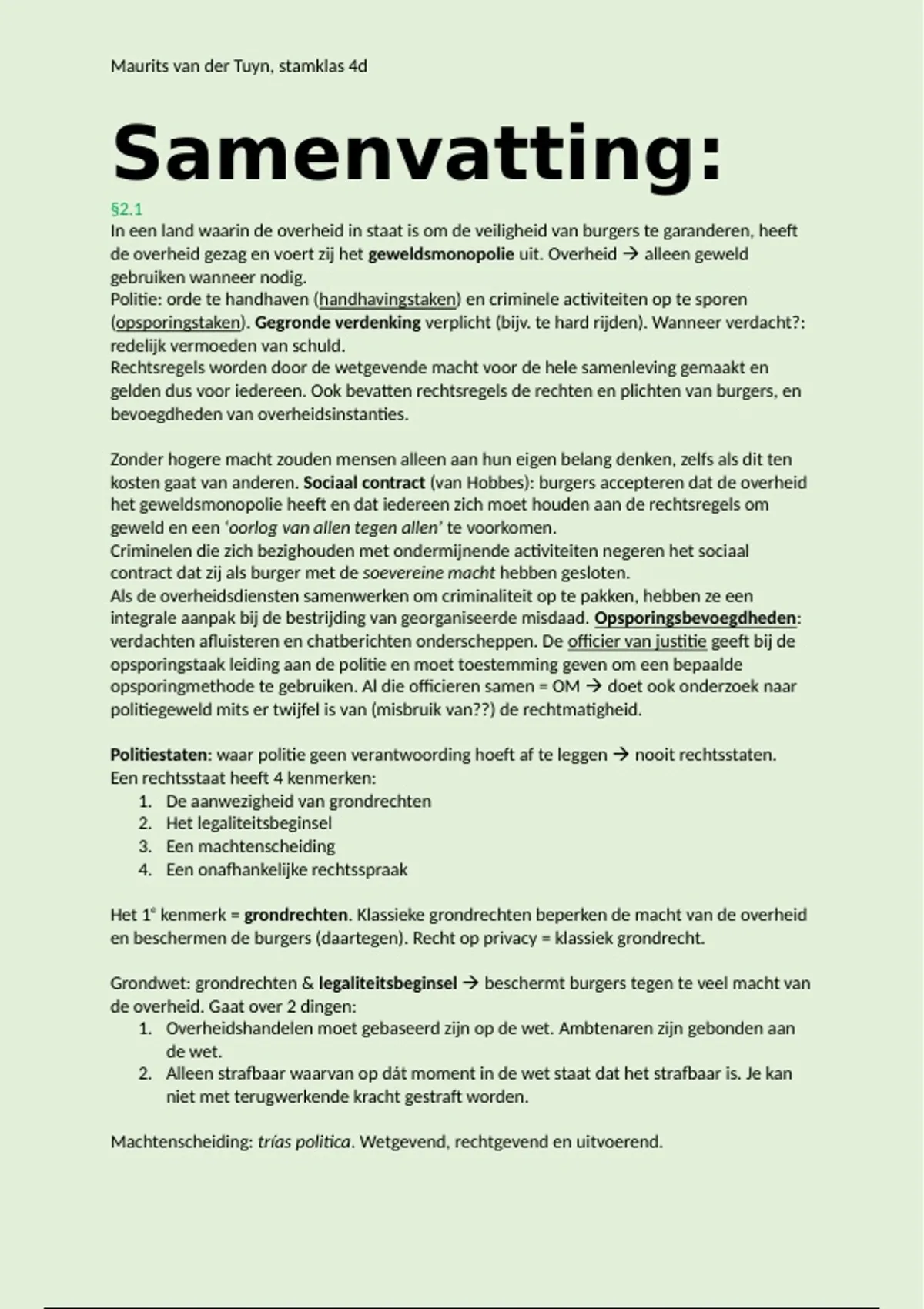 Grondwet: grondrechten & legaliteitsbeginsel beschermt burgers tegen te veel macht van