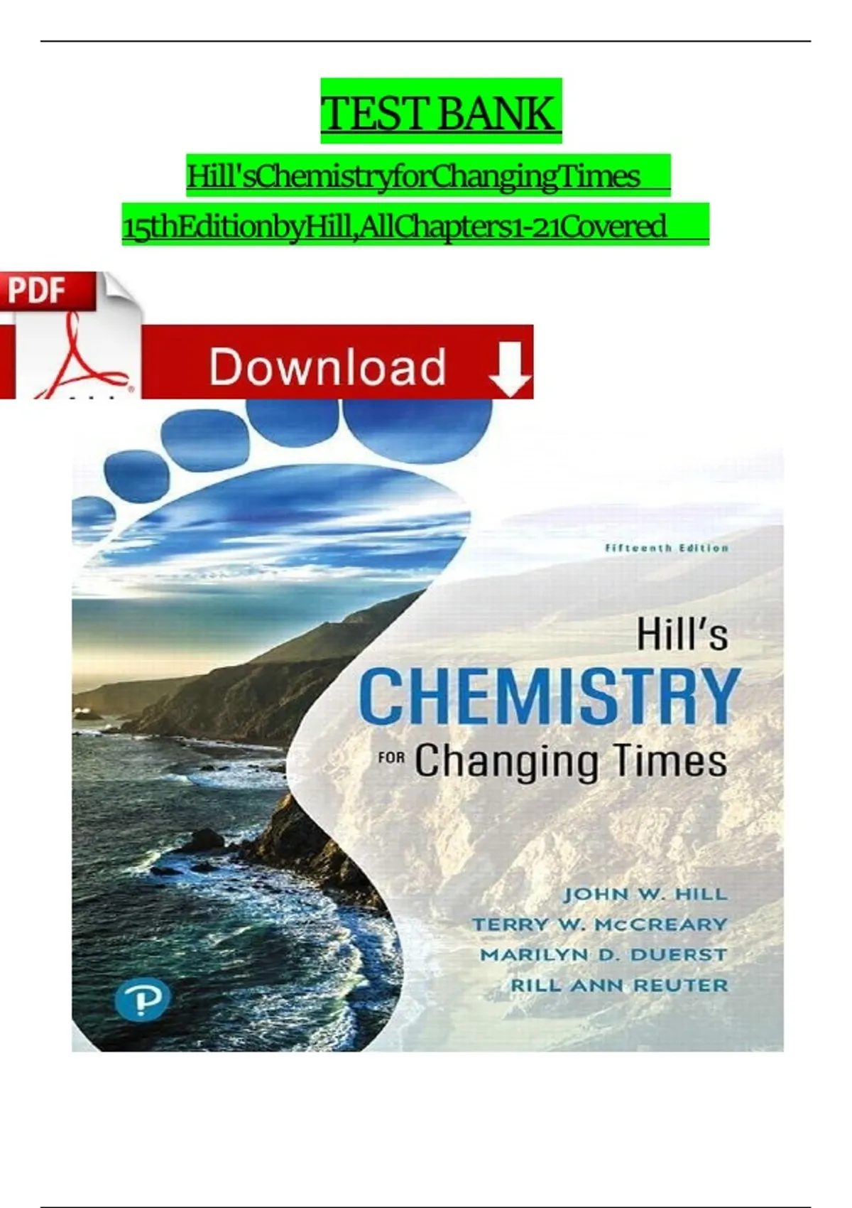 Chemistry for Changing Times (15th Edition) by John Hill, Terry, Marilyn Duerst & Rill Reuter – Complete Test Bank Material