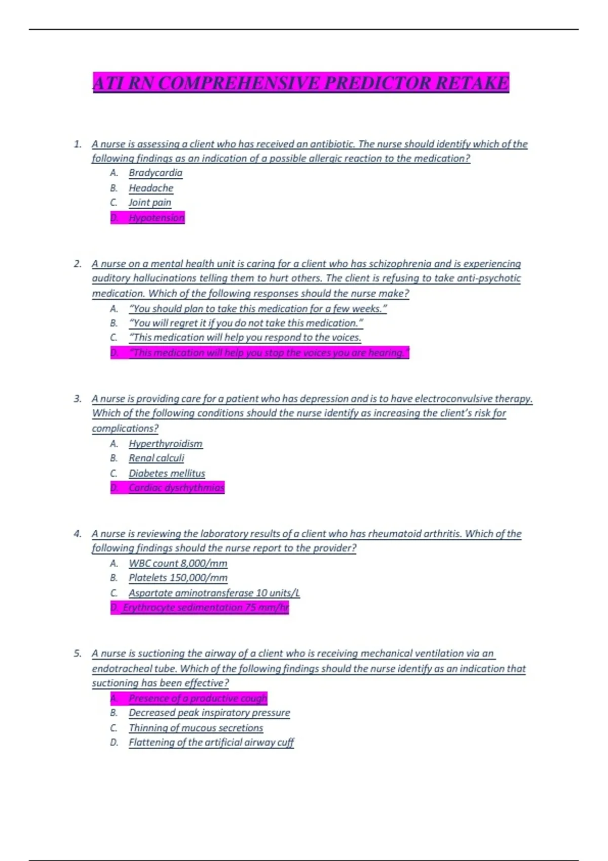 1. A nurse is assessing a client who has received an antibiotic. The nurse should identify which of the