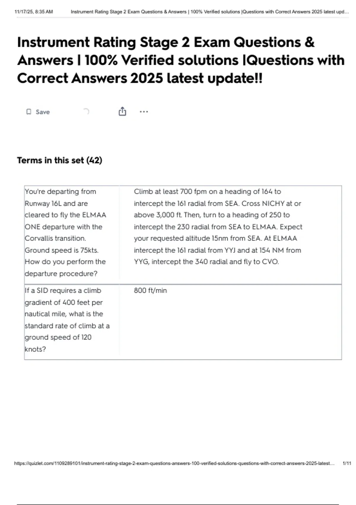, 11/17/25, 8:35 AM Instrument Rating Stage 2 Exam Questions & Answers | 100% Verified solutions |Questions with Correct Answers 2025 latest upd…