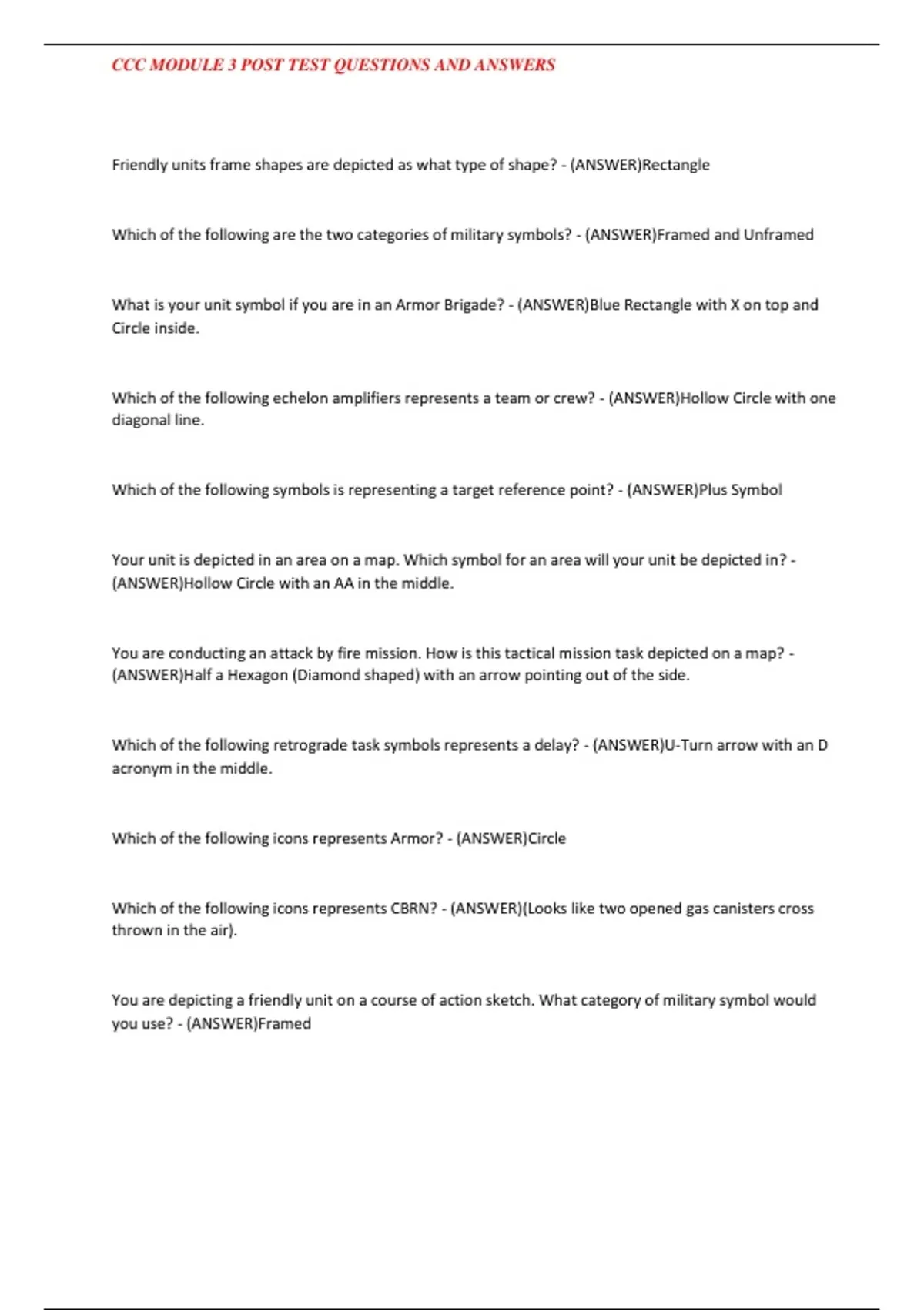 , CCC MODULE 3 POST TEST QUESTIONS AND ANSWERS