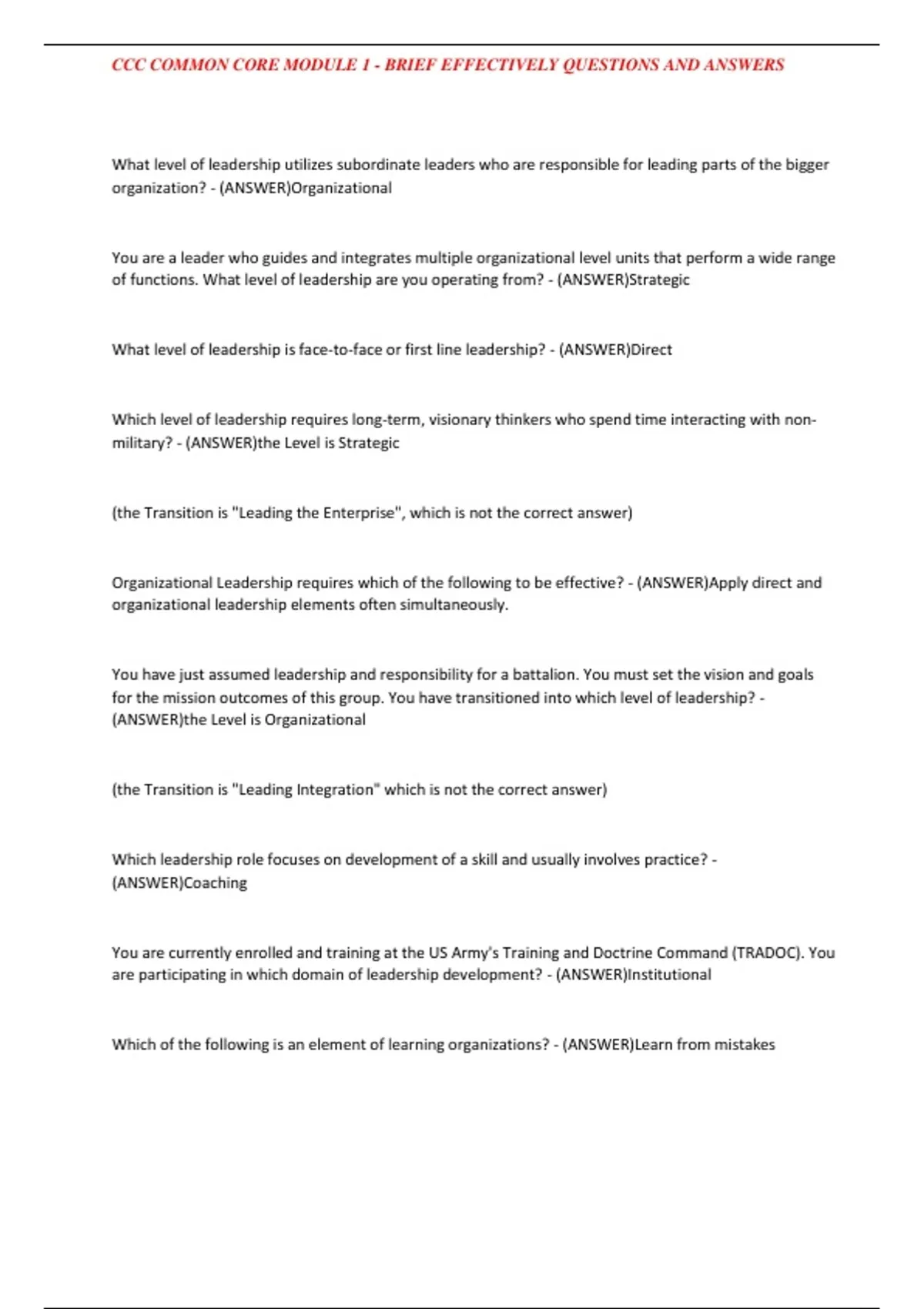 CCC COMMON CORE MODULE 1 - BRIEF EFFECTIVELY QUESTIONS AND ANSWERS