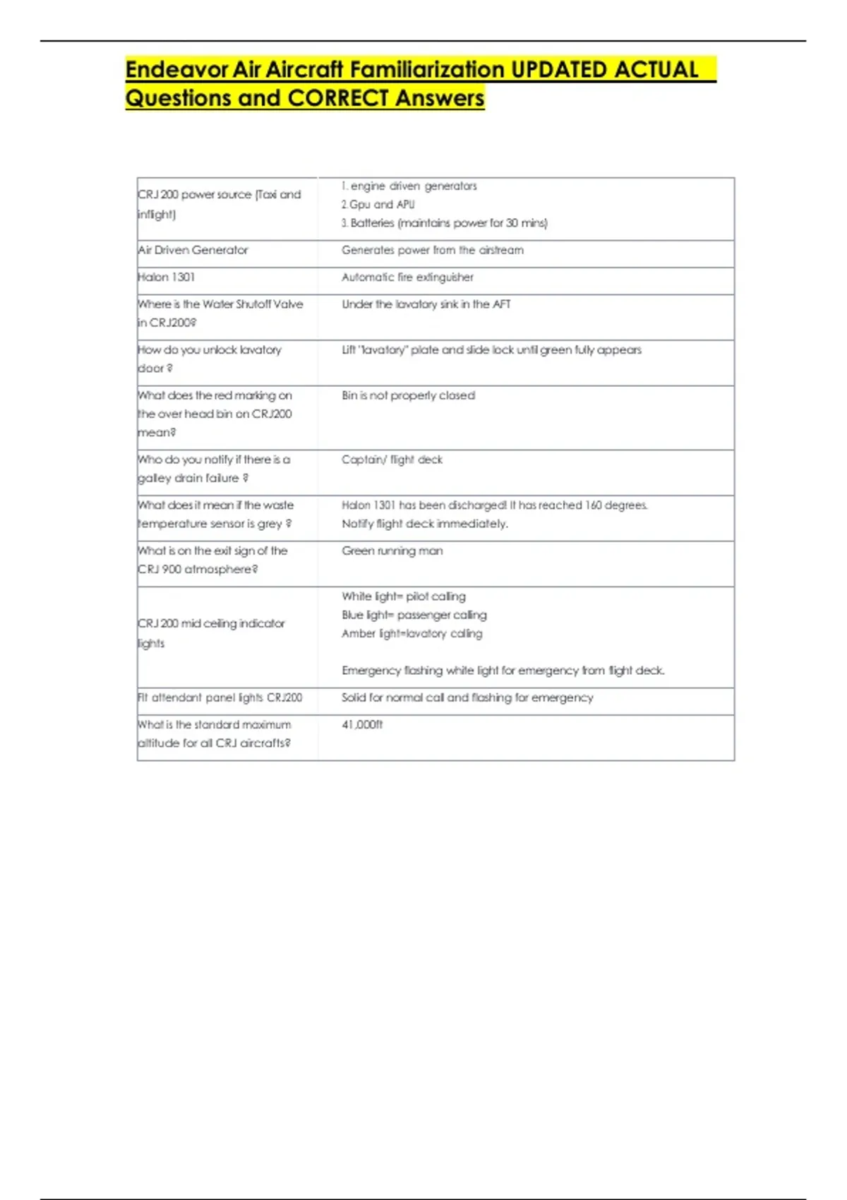Endeavor Air Aircraft Familiarization UPDATED ACTUAL Questions and CORRECT Answers