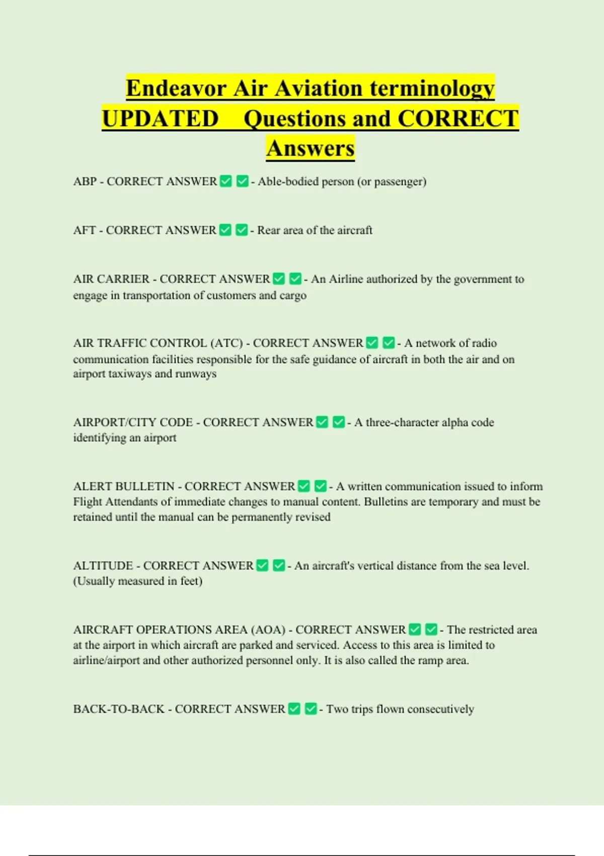 Endeavor Air Aviation terminology UPDATED Questions and CORRECT Answers