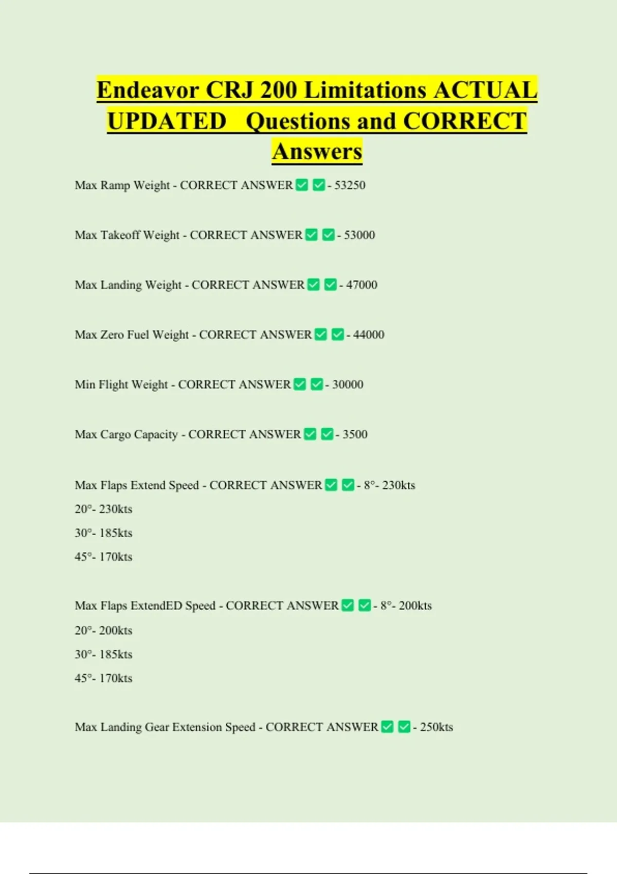 Endeavor CRJ 200 Limitations ACTUAL UPDATED Questions and CORRECT Answers