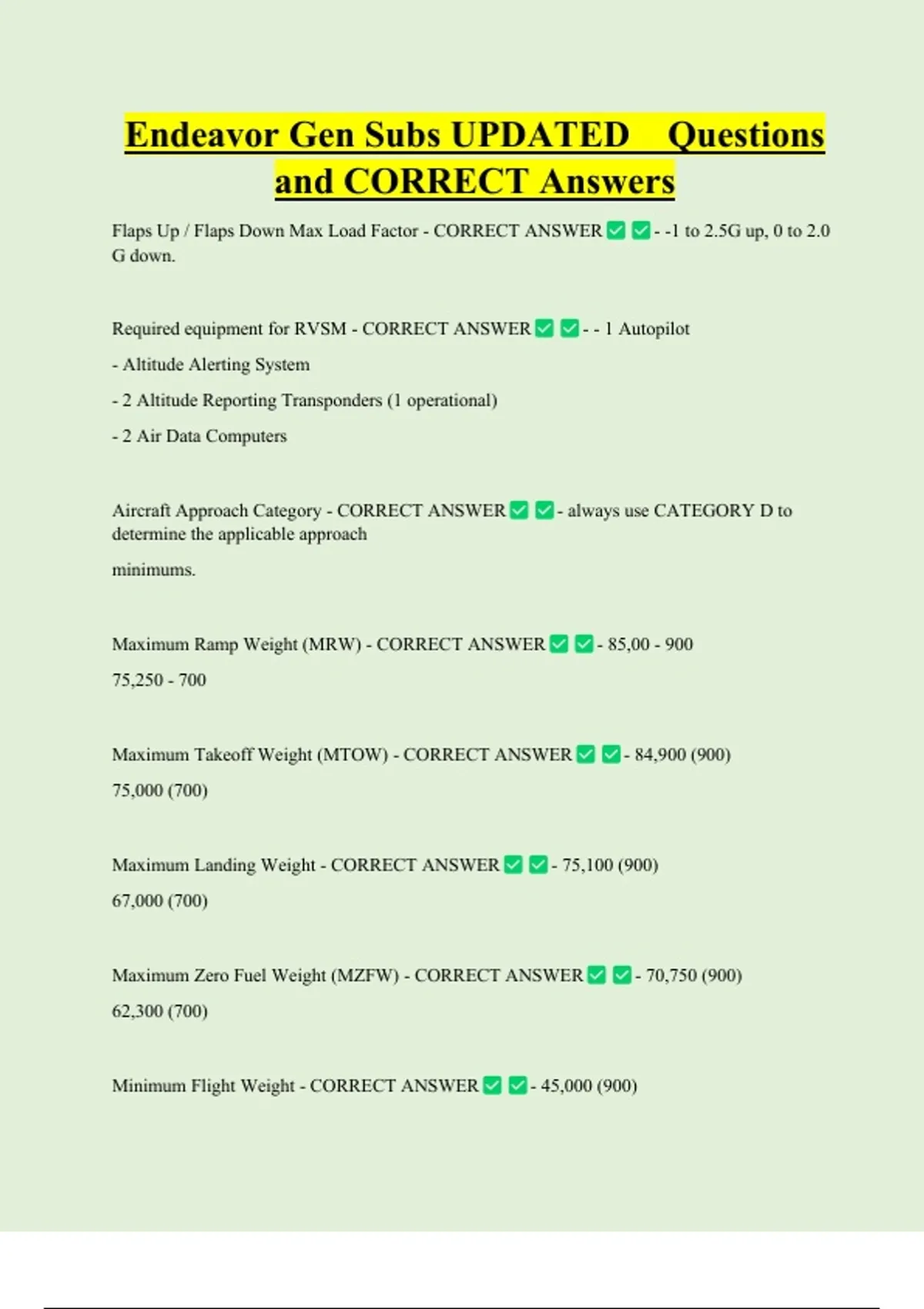 Maximum Landing Weight - CORRECT ANSWER - 75,100 (900)