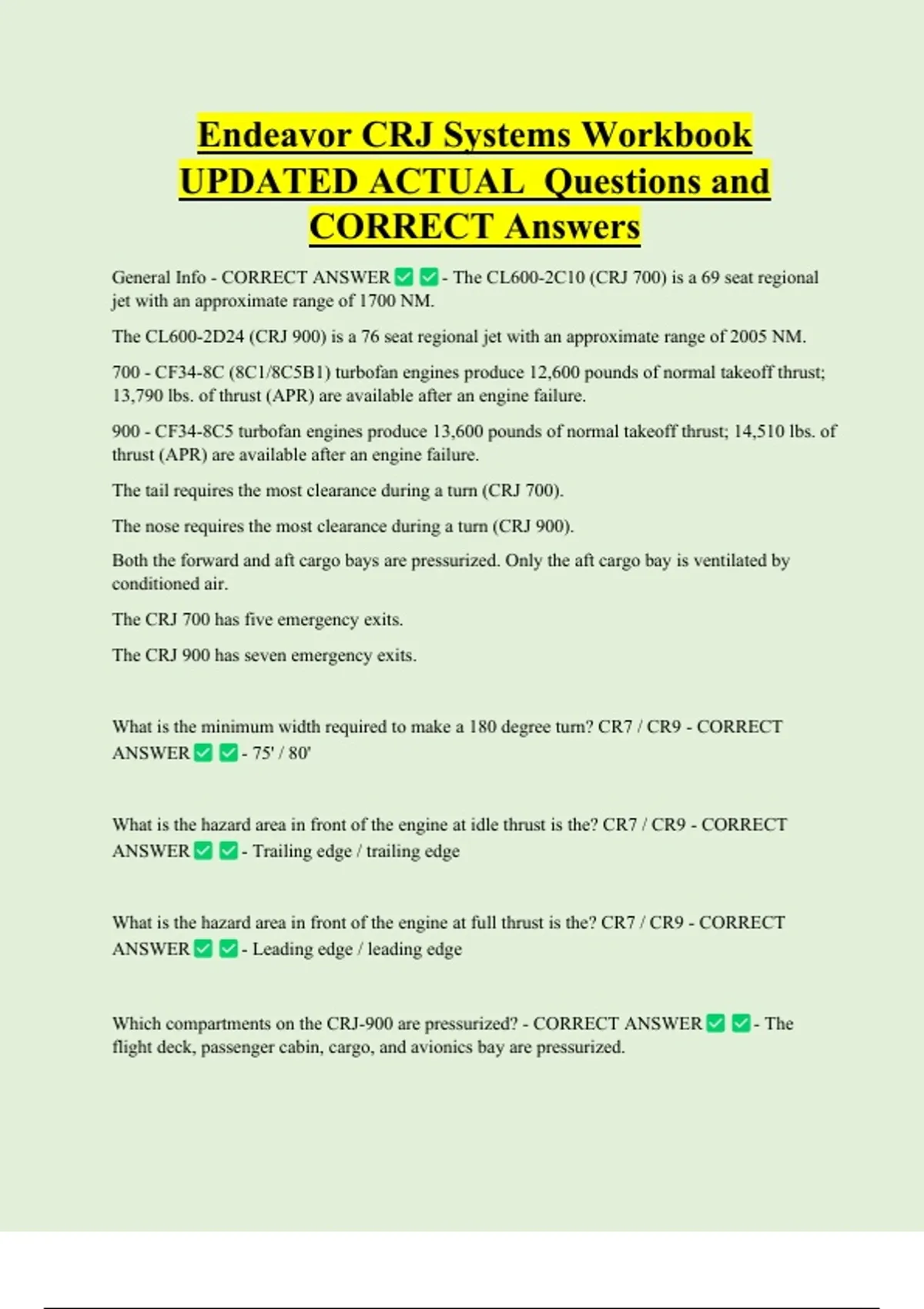 Endeavor CRJ Systems Workbook UPDATED ACTUAL Questions and CORRECT Answers