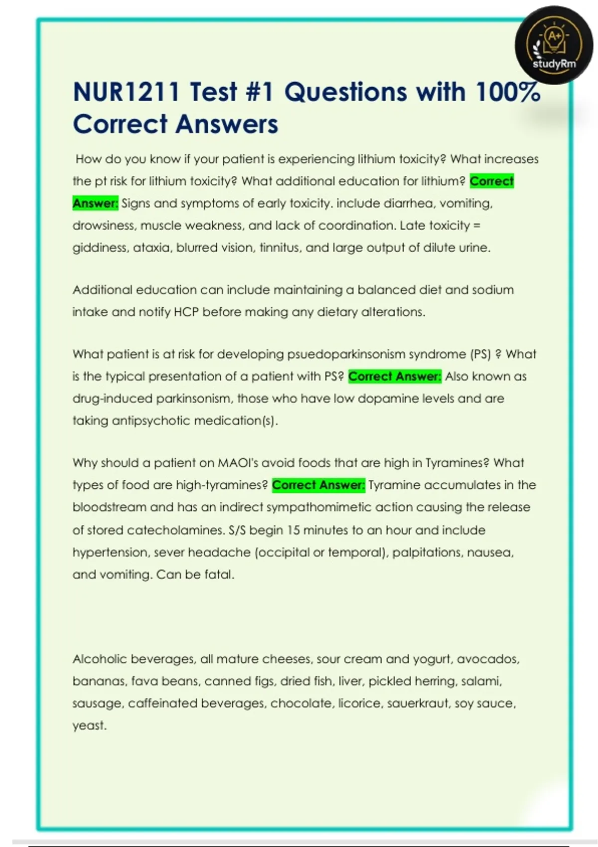 NUR1211 Test #1 Questions with 100% Correct Answers