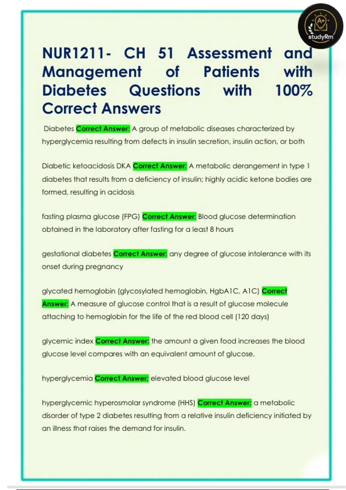 Diabetes Questions with 100%