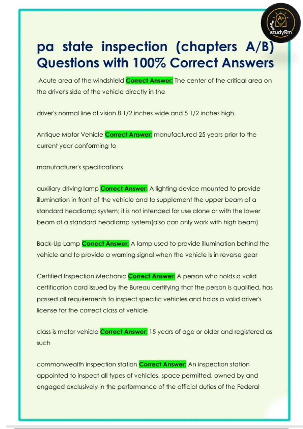 pa state inspection (chapters A/B)