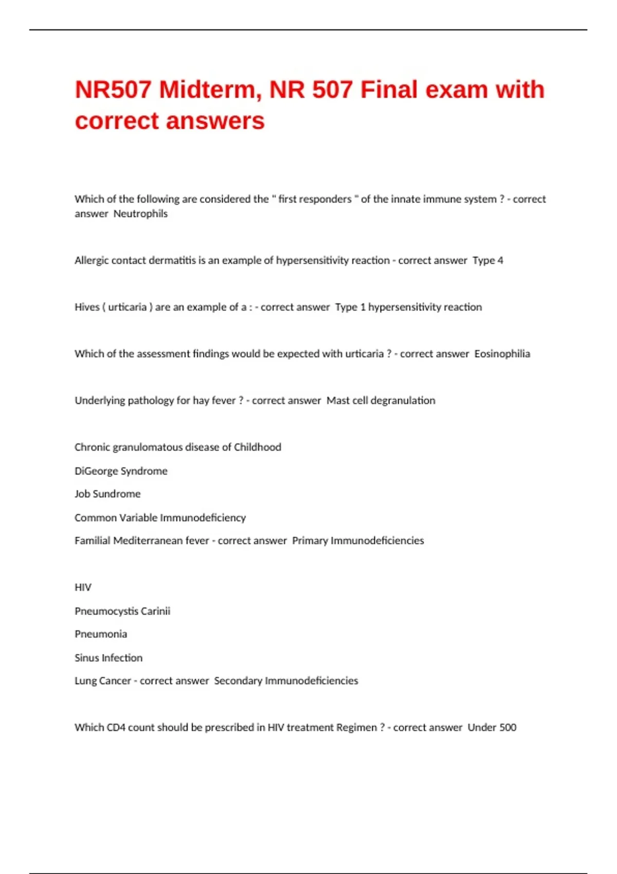Lung Cancer - correct answer Secondary Immunodeficiencies