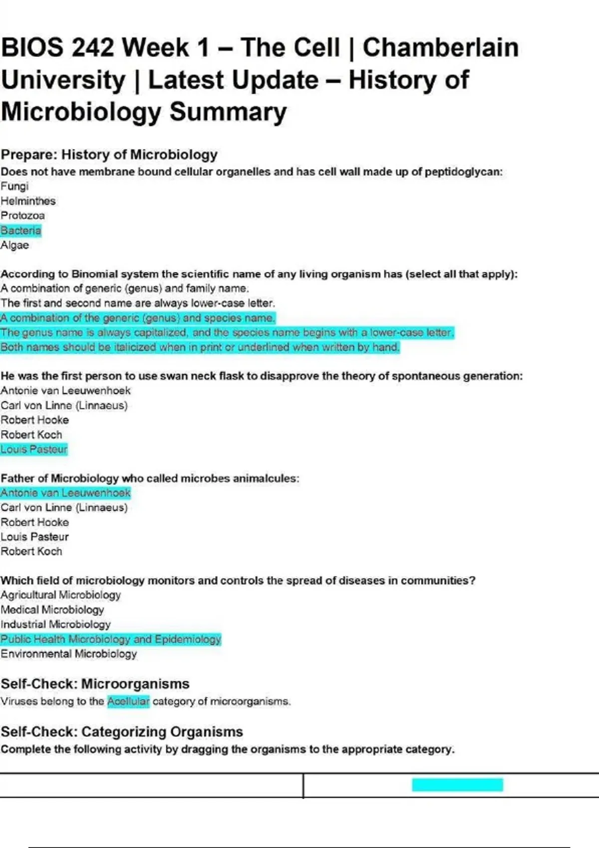 Ace BIOS 242 Week 1 with the Ultimate Study Guide & Test Bank – The Cell + History of Microbiology Summary | Chamberlain University | Latest Updates