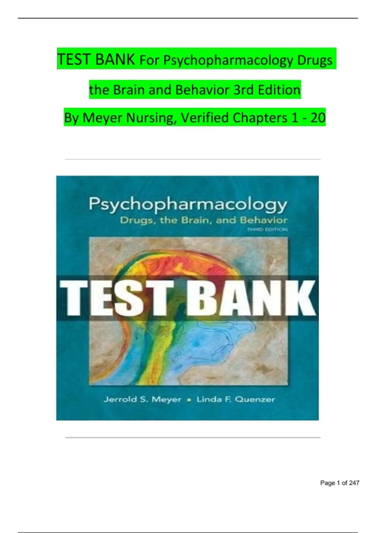 TEST BANK For Psychopharmacology Drugs the Brain and Behavior 3rd Edition By Meyer Nursing, Verified Chapters 1 - 20 TEST BANK For Psychopharmacology Drugs the Brain and Behavior 3rd Edition By Meyer Nursing, Verified Chapters 1 - 20 TEST BANK For Psychopharmacology Drugs the Brain and Behavior 3rd Edition By Meyer Nursing, Verified Chapters 1 - 20
