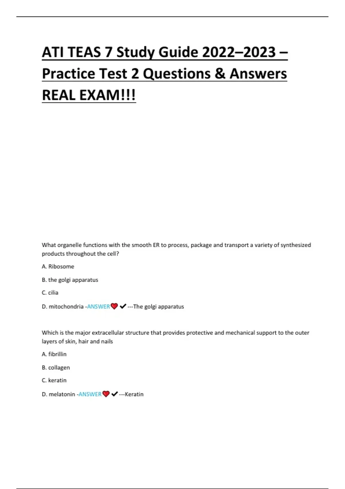 ATI TEAS 7 Study Guide 2022–2023 – Practice Test 2 Questions & Answers (REAL EXAM!)