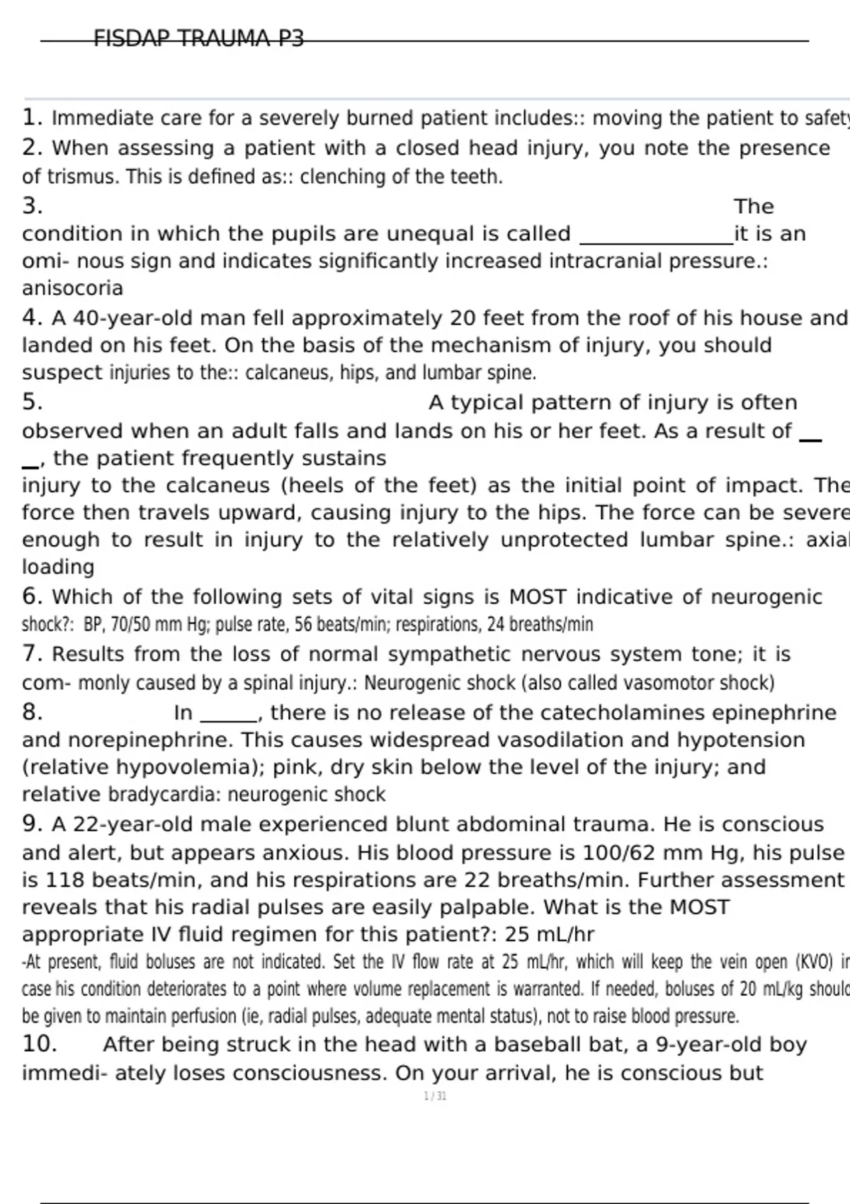 , FISDAP TRAUMA P3