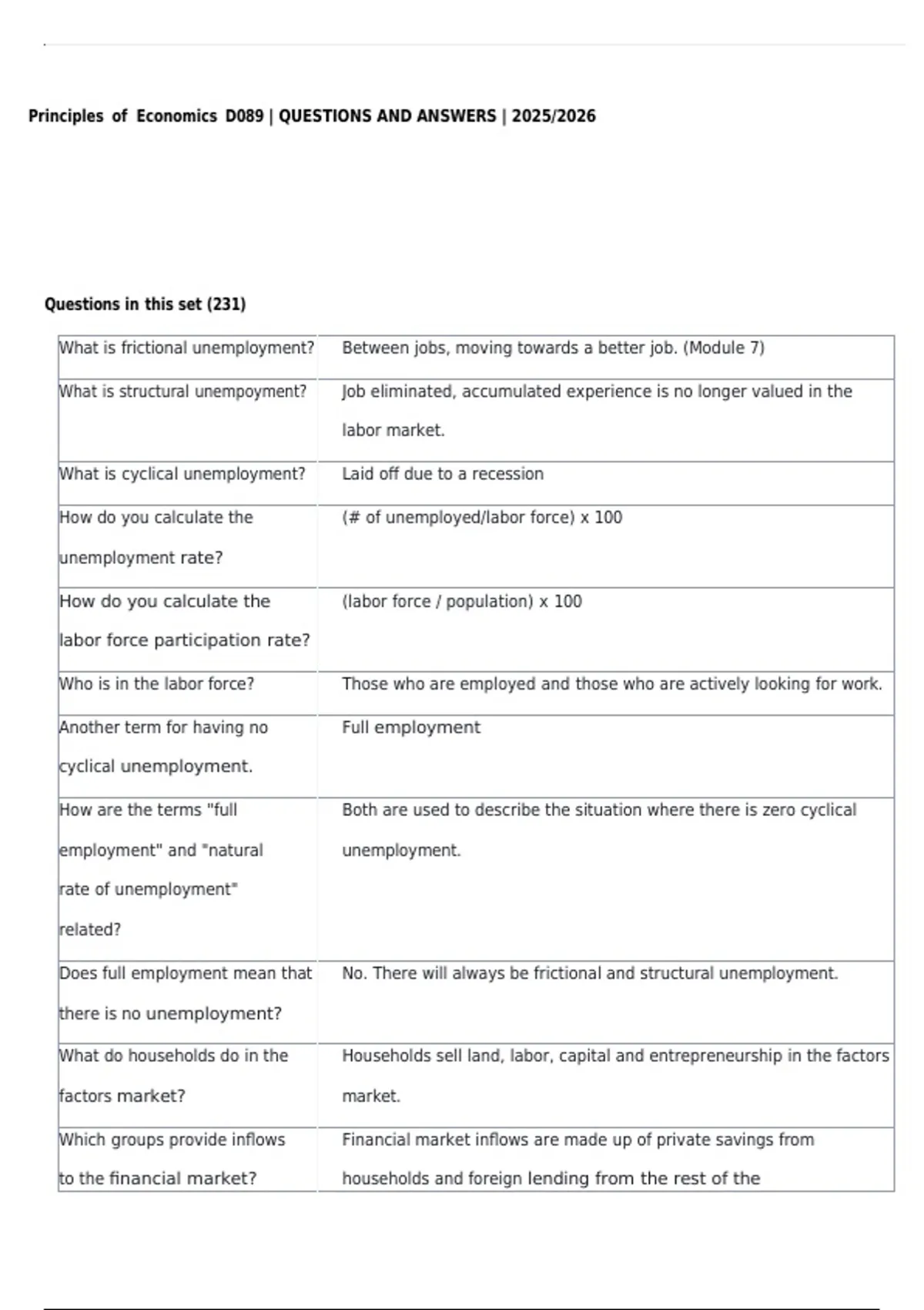 Principles of Economics D089 | QUESTIONS AND ANSWERS | 2025/2026