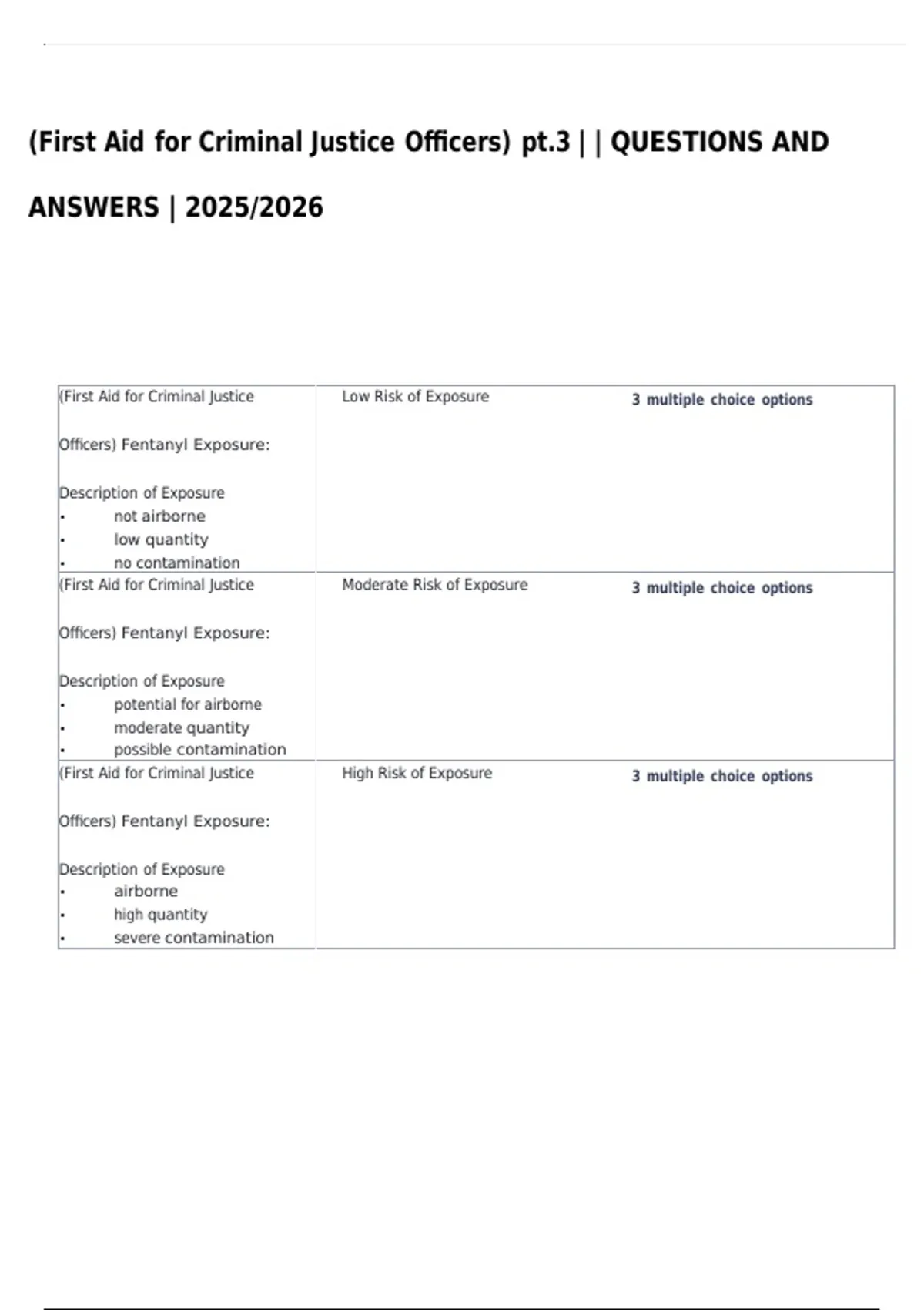 (First Aid for Criminal Justice High Risk of Exposure 3 multiple choice options