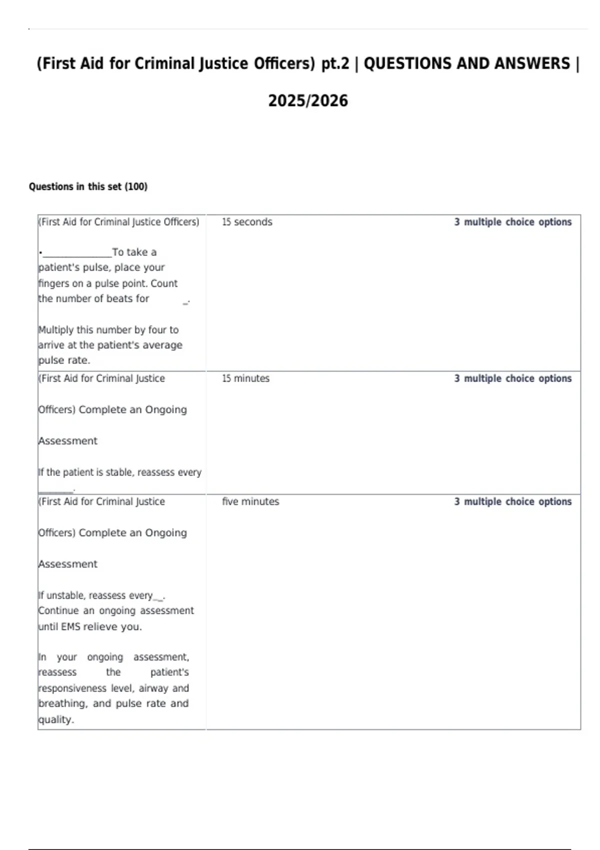 (First Aid for Criminal Justice 15 minutes 3 multiple choice options