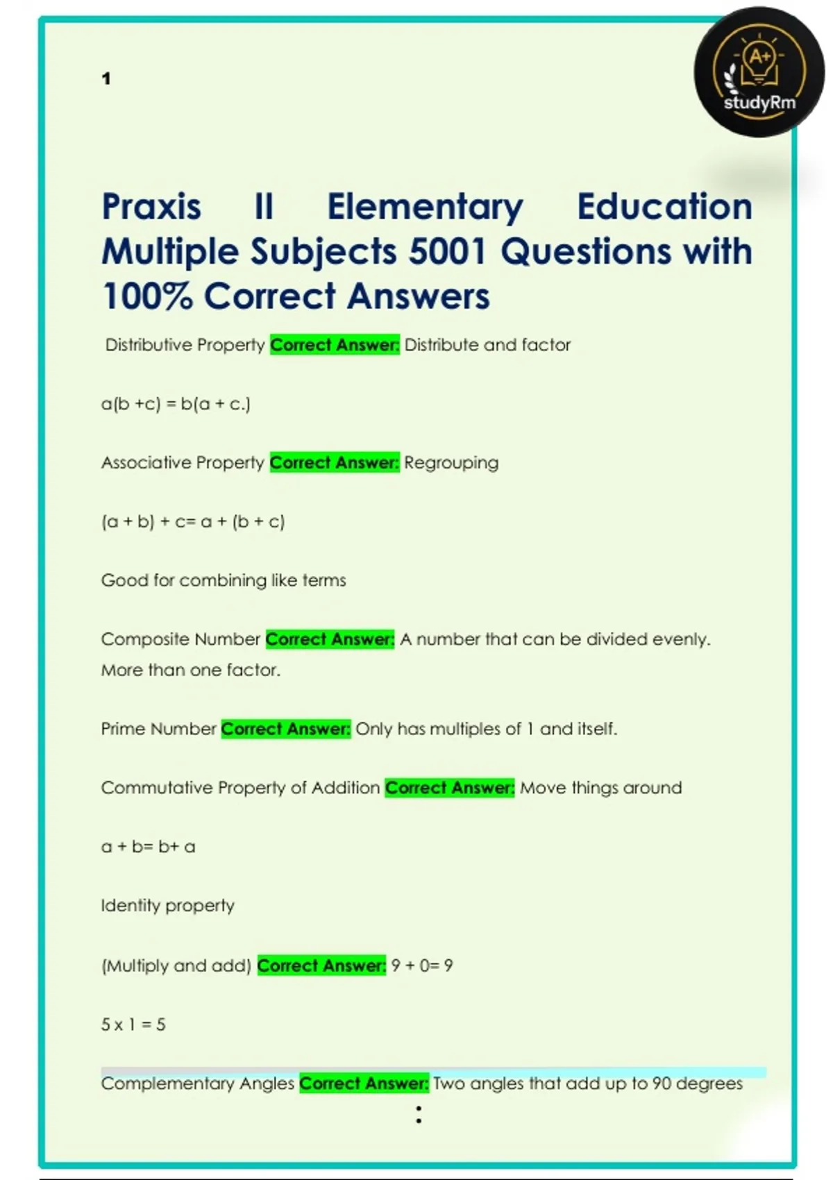 Complementary Angles Correct Answer: Two angles that add up to 90 degrees