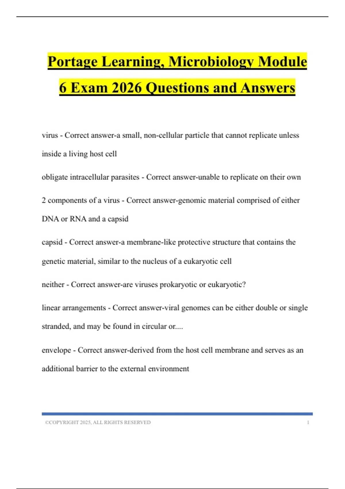 Portage Learning microbiology Bundled Tests Questions and Answers Graded A+