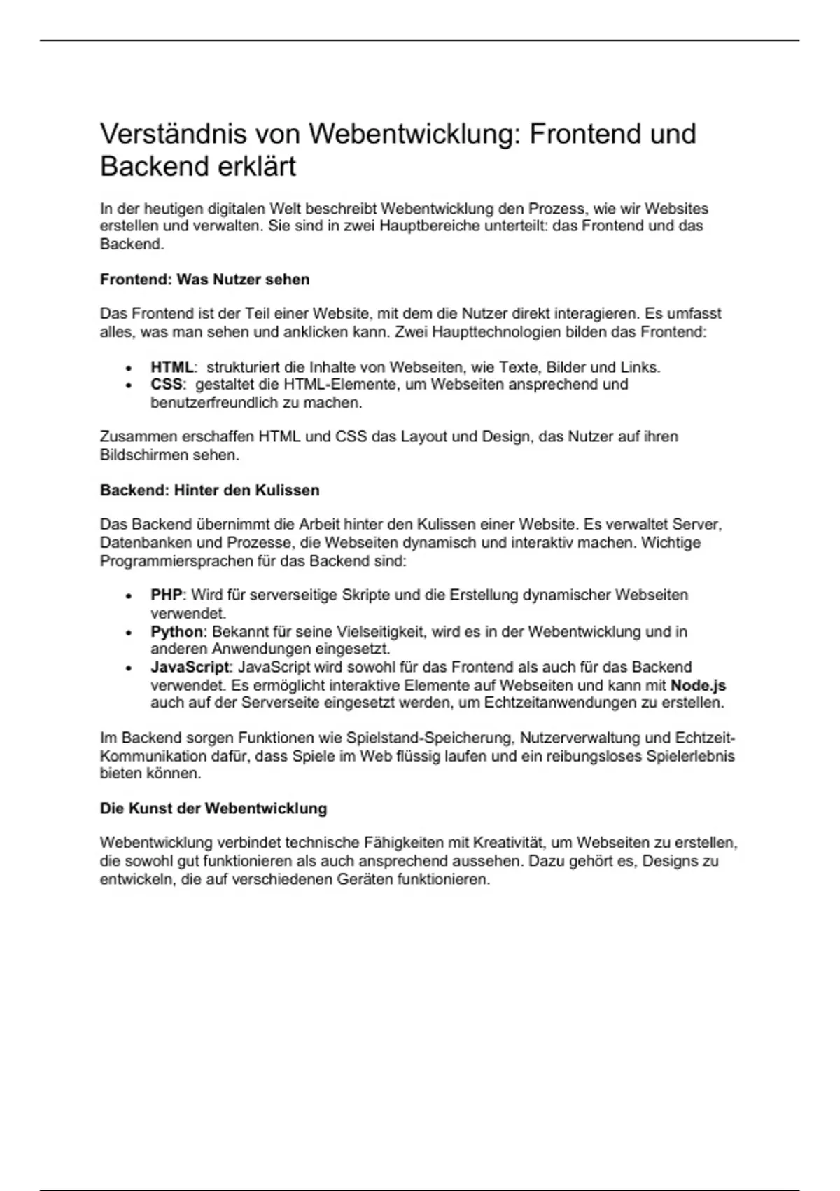 Verständnis von Webentwicklung: Frontend und
