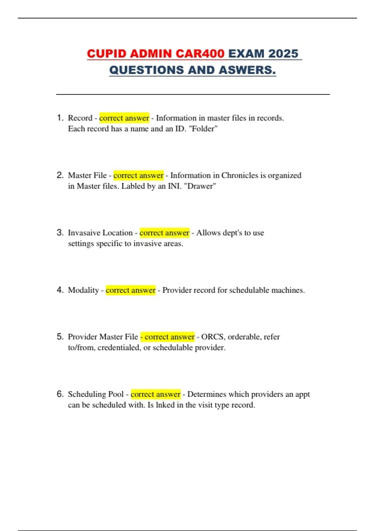 CUPID Admin CAR400 – Exam Questions and Answers 2025 (Comprehensive Exam Preparation Material)