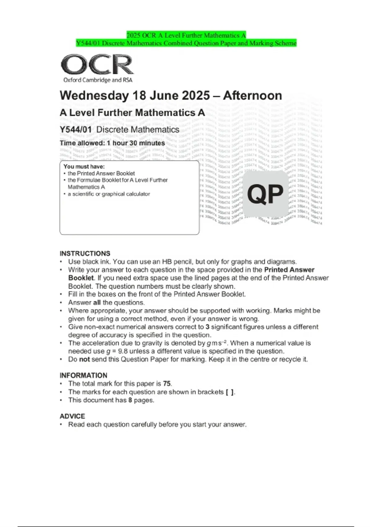 2025 OCR A Level Further Mathematics A Y544/01 Discrete Mathematics Combined Question Paper and Marking Scheme