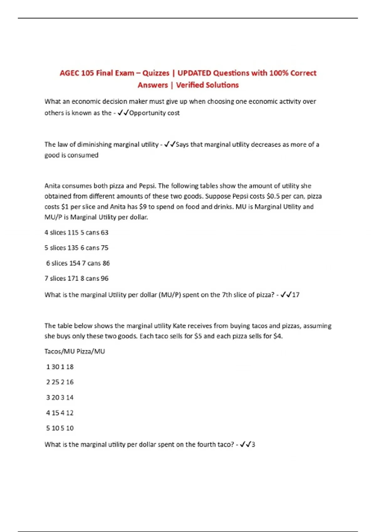 AGEC 105 Final Exam – Quizzes | UPDATED Questions with 100% Correct Answers | Verified Solutions
