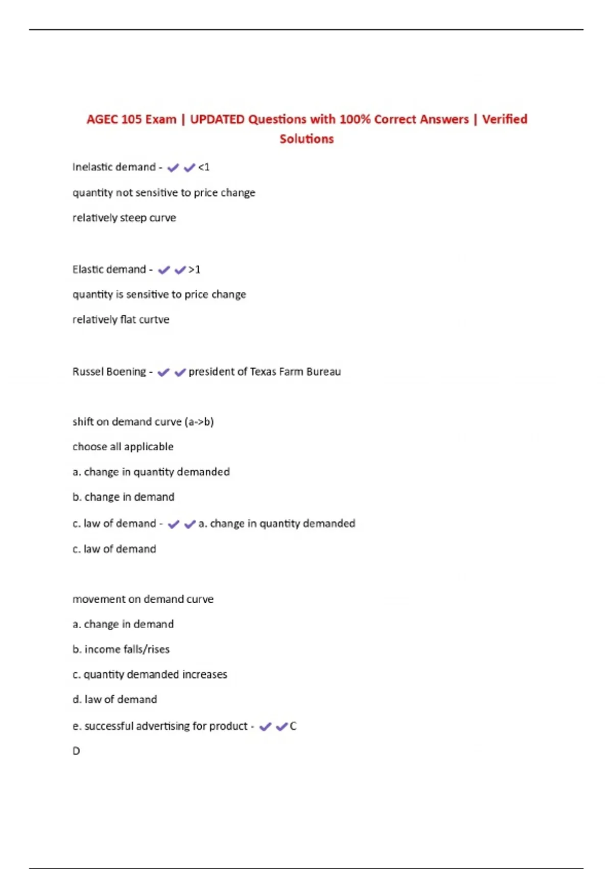 AGEC 105 Exam | UPDATED Questions with 100% Correct Answers | Verified Solutions