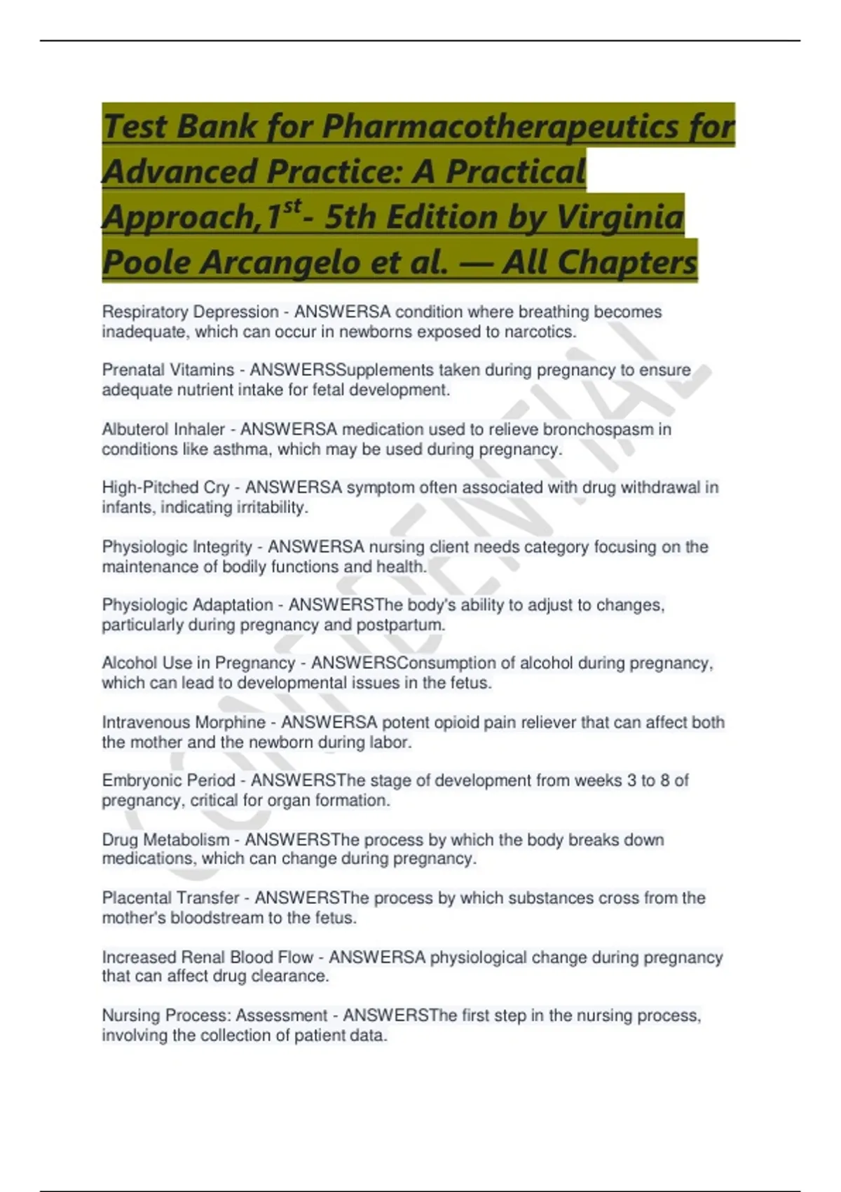 Prenatal Vitamins - ANSWERSSupplements taken during pregnancy to ensure